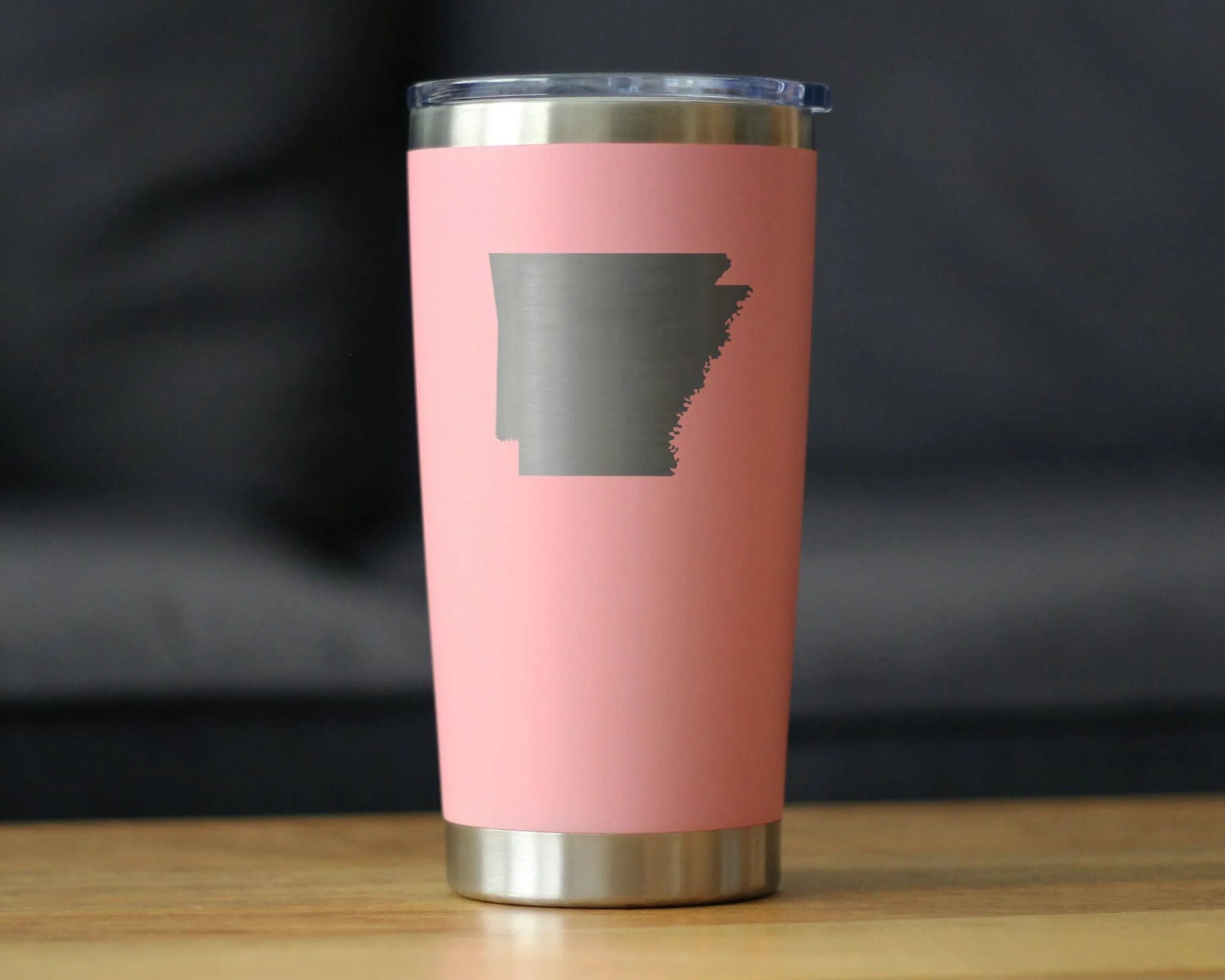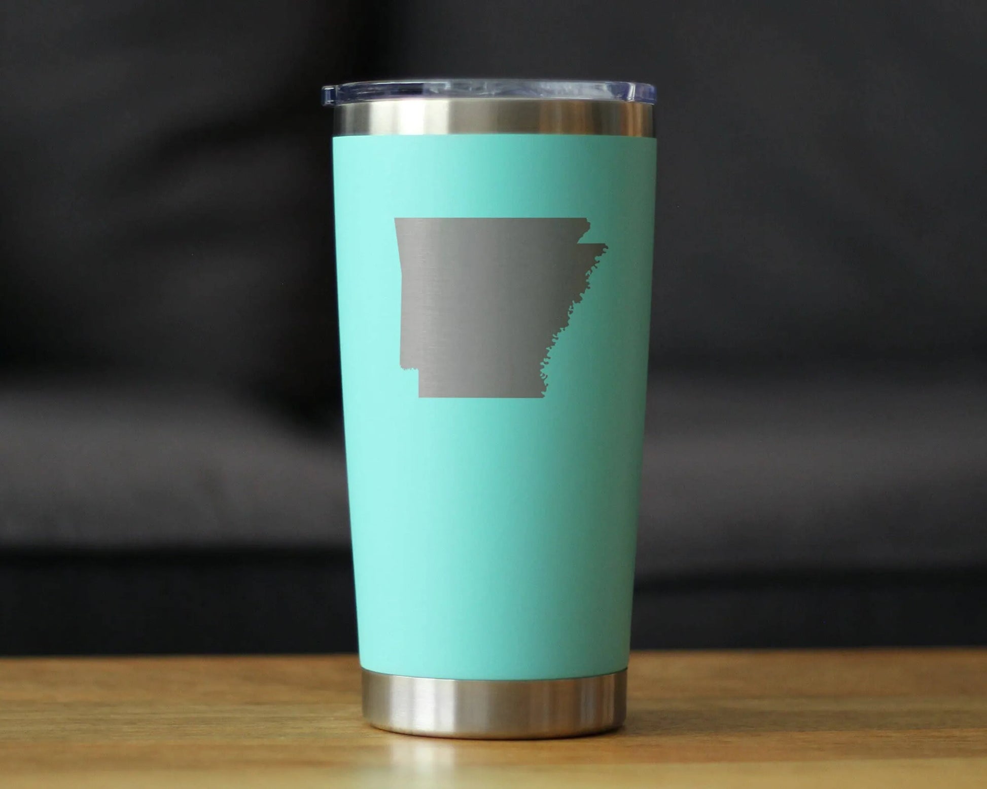 Insulated Coffee Tumbler Cup with Sliding Lid 20 oz - Arkansas State Outline - Cute Gift for Arkansawyers Who Love Arkansas