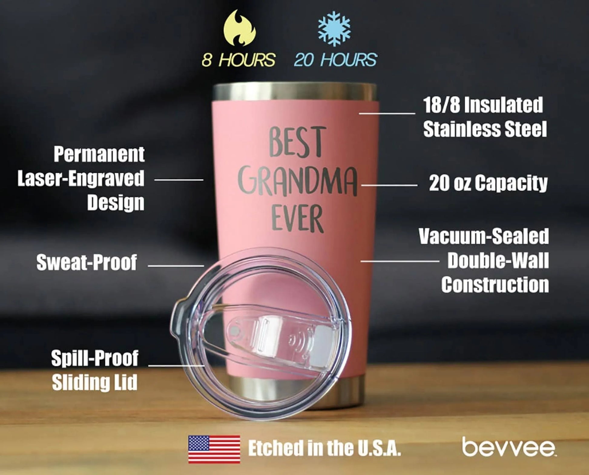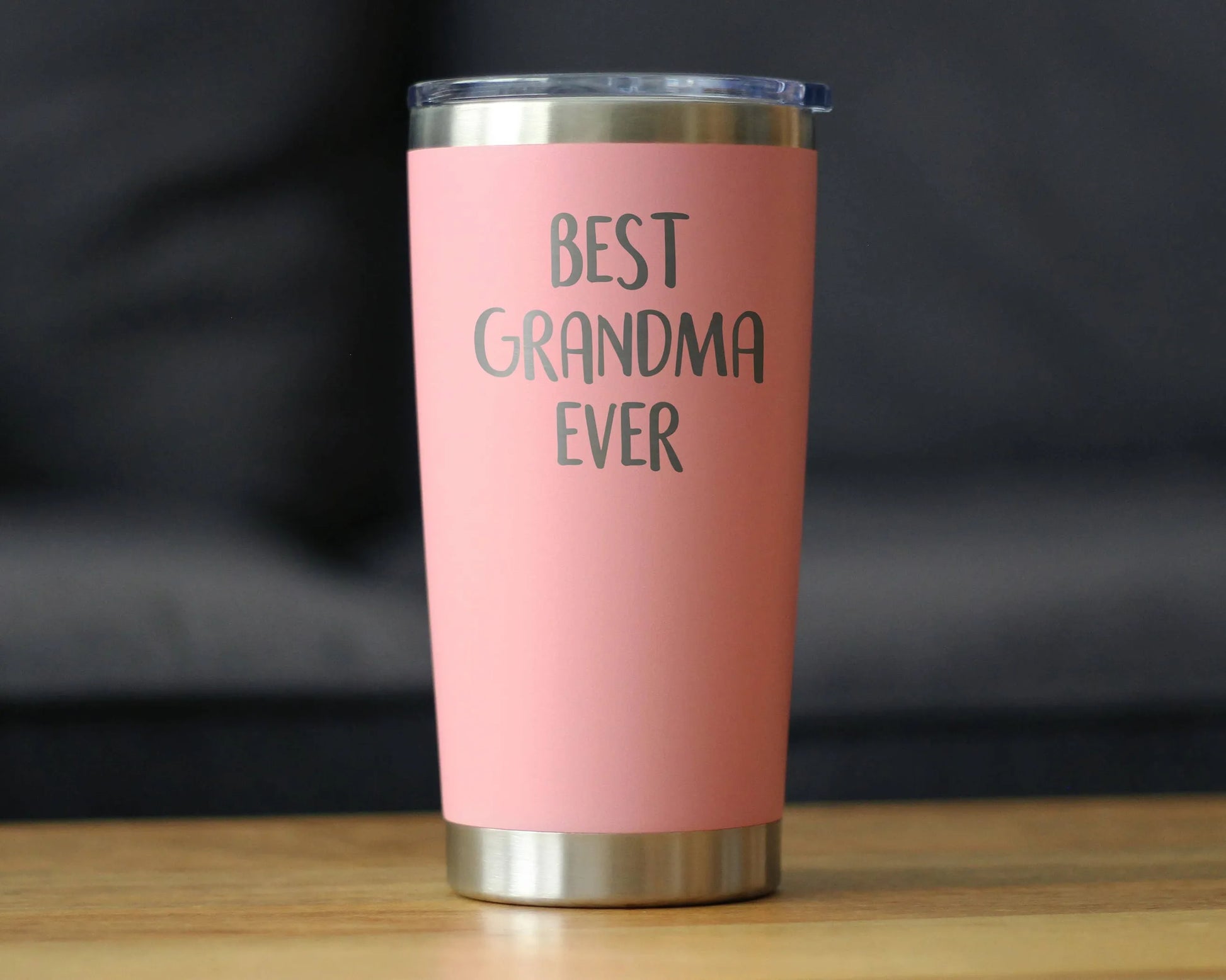 Insulated Coffee Tumbler Cup with Sliding Lid - Best Grandma Ever - 20 oz - Cute Funny Gift for Grandmas