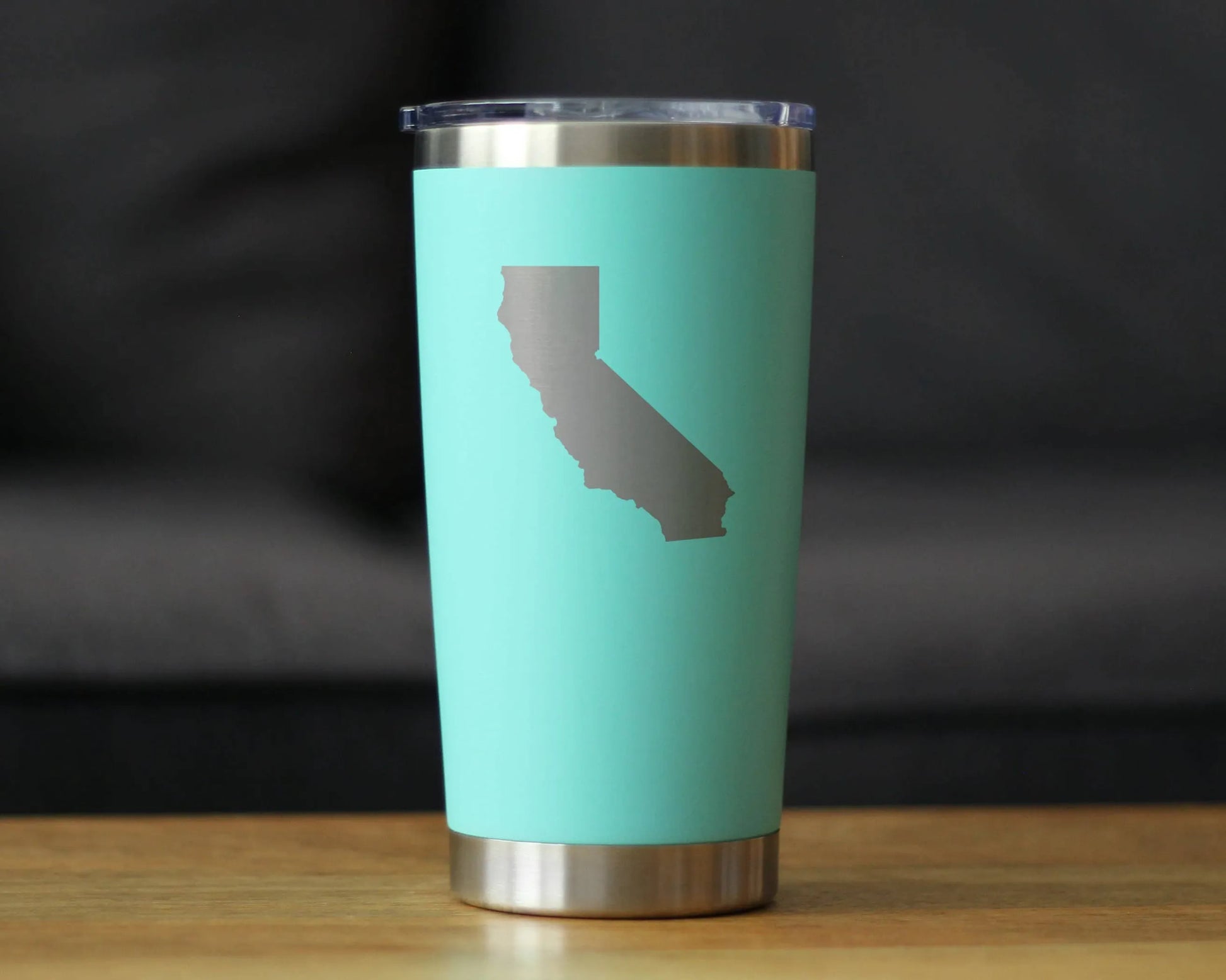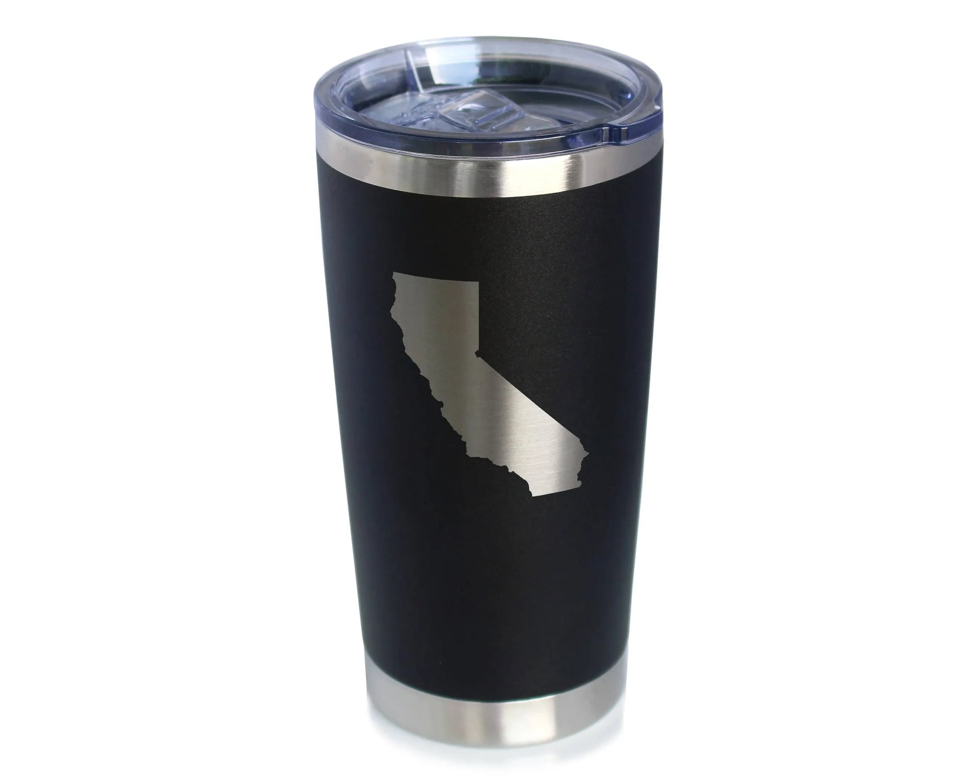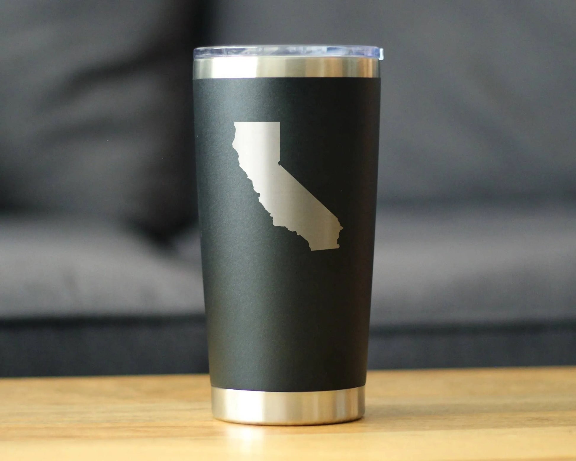 California State Outline - Insulated Coffee Tumbler Cup with Sliding Lid - Stainless Steel Travel Mugs - Gifts for Women & Men Californians