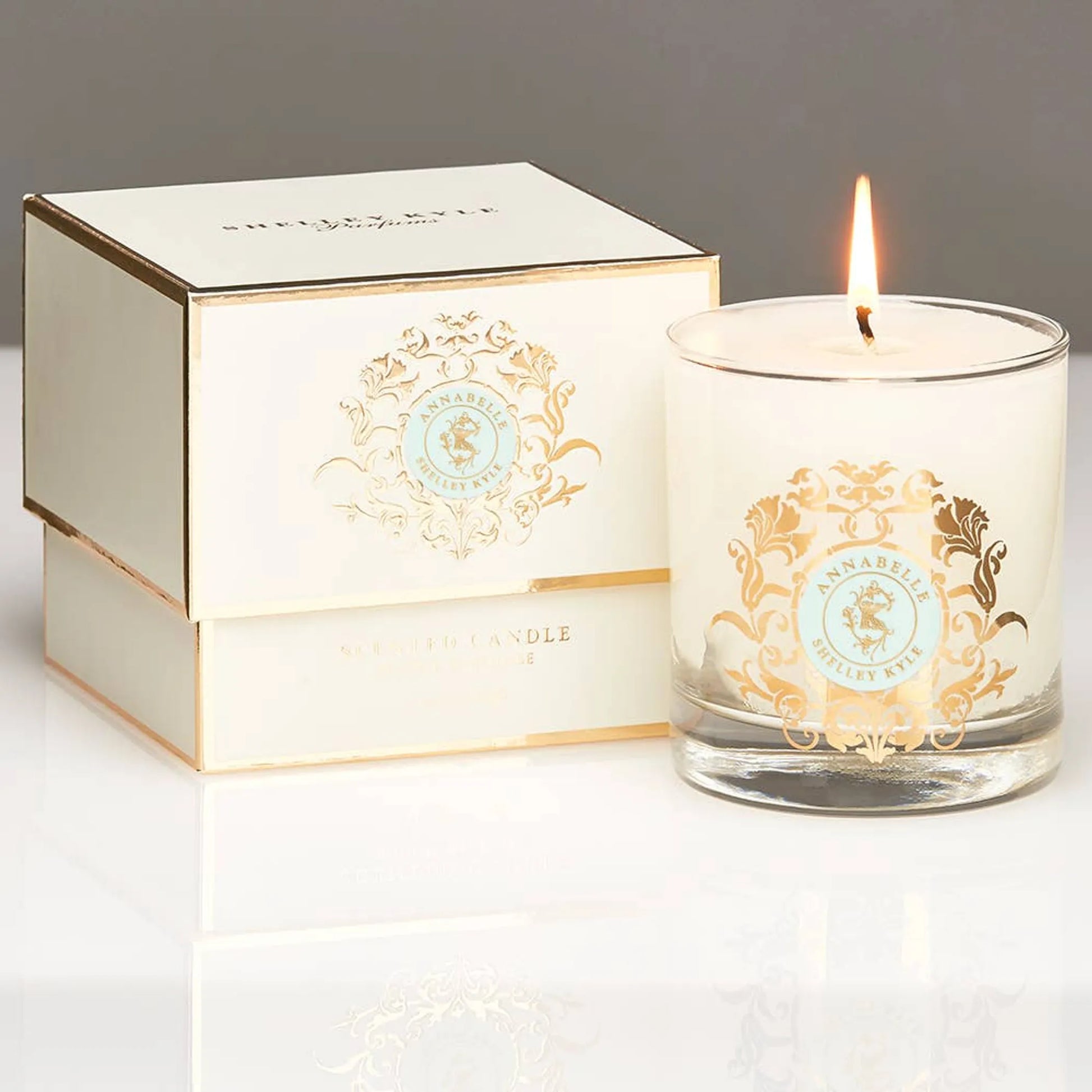 The classic 11oz Shelley Kyle candle design is again available for purchase after years of waiting. This clean-burning candle contains high-levels of essential oils and fragrance in a simple glass