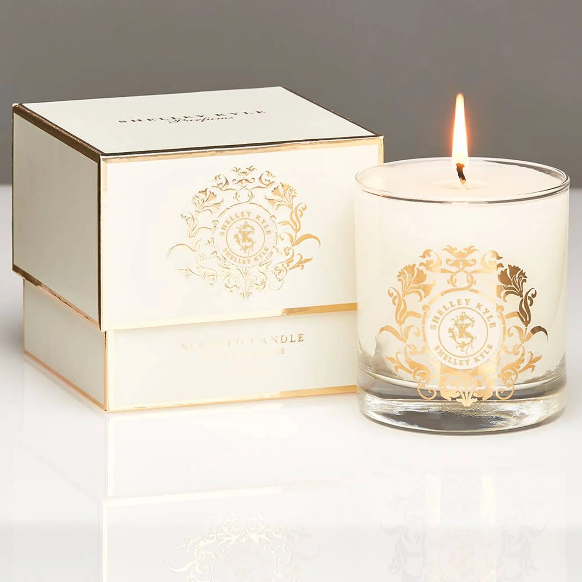 The classic 11oz Shelley Kyle candle design is again available for purchase after years of waiting. This clean-burning candle contains high-levels of essential oils and fragrance in a simple glass