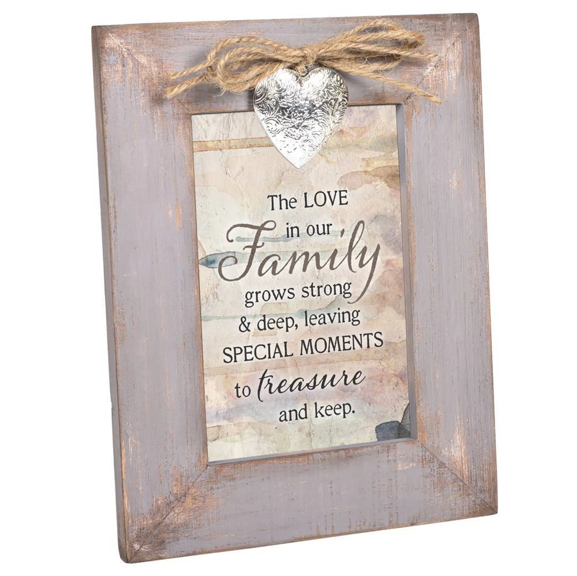 The frame in a natural finish and features a scroll patterned heart-shaped silver tone locket to keep a treasured photo or keepsake.