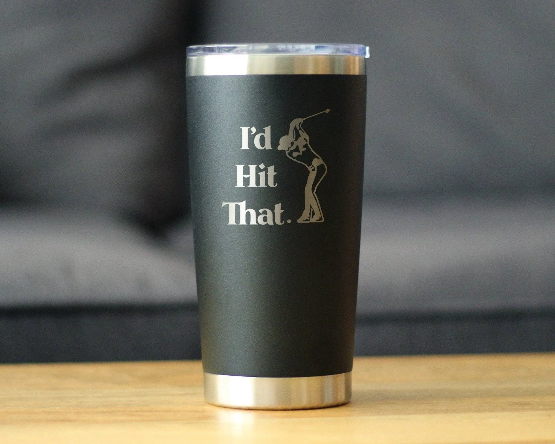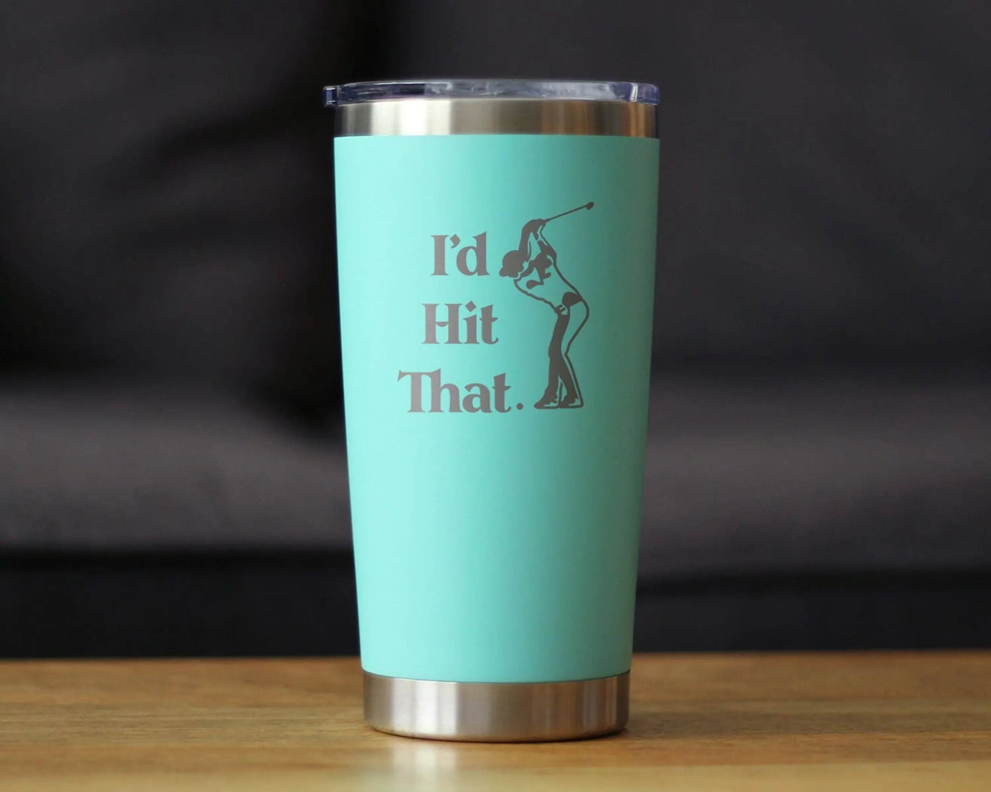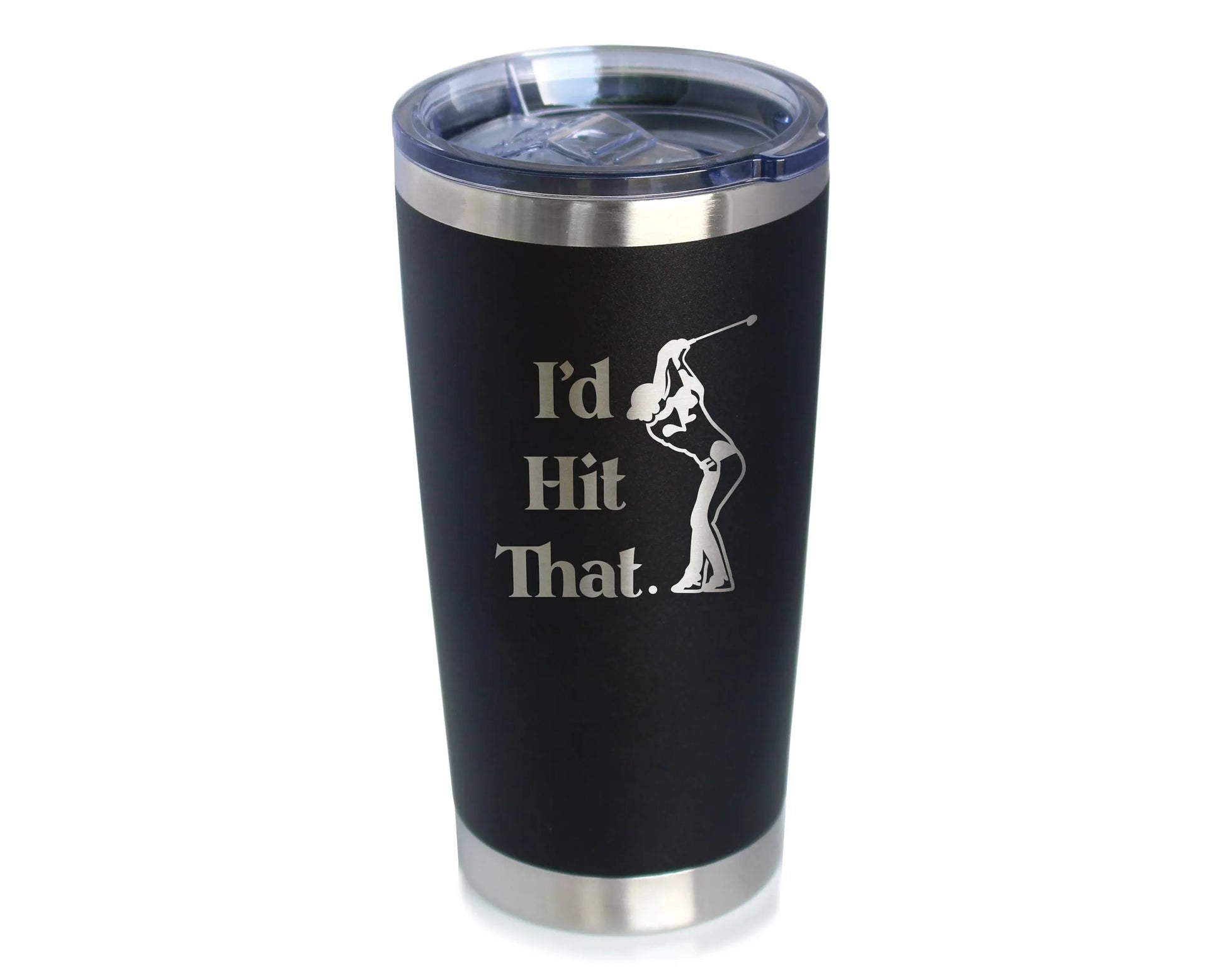 Insulated Coffee Tumbler Cup with Sliding Lid - I'd Hit That - 20 oz - Funny Unique Golfing Themed Gifts for Golfers Who Love to Golf