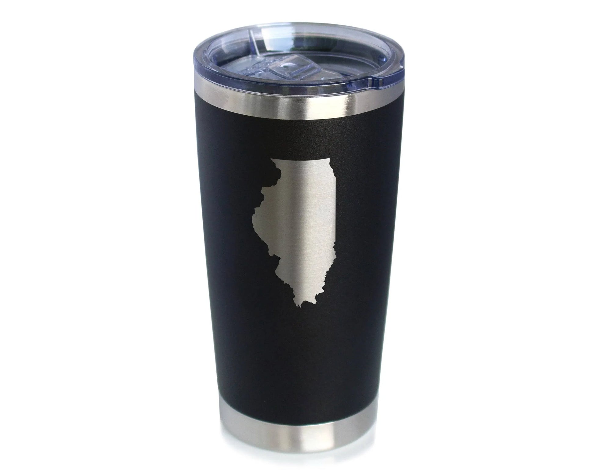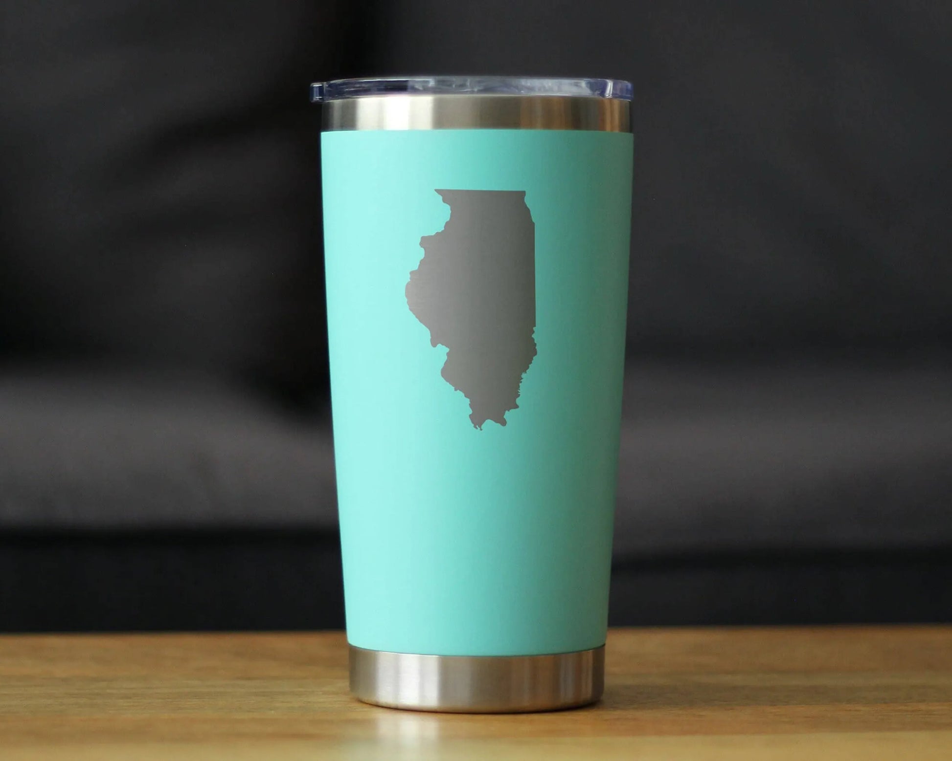 Insulated Coffee Tumbler Cup with Sliding Lid 20 oz - Illinois State Outline - Cute Gift for Illinoisans & Chicagoans Who Love Illinois