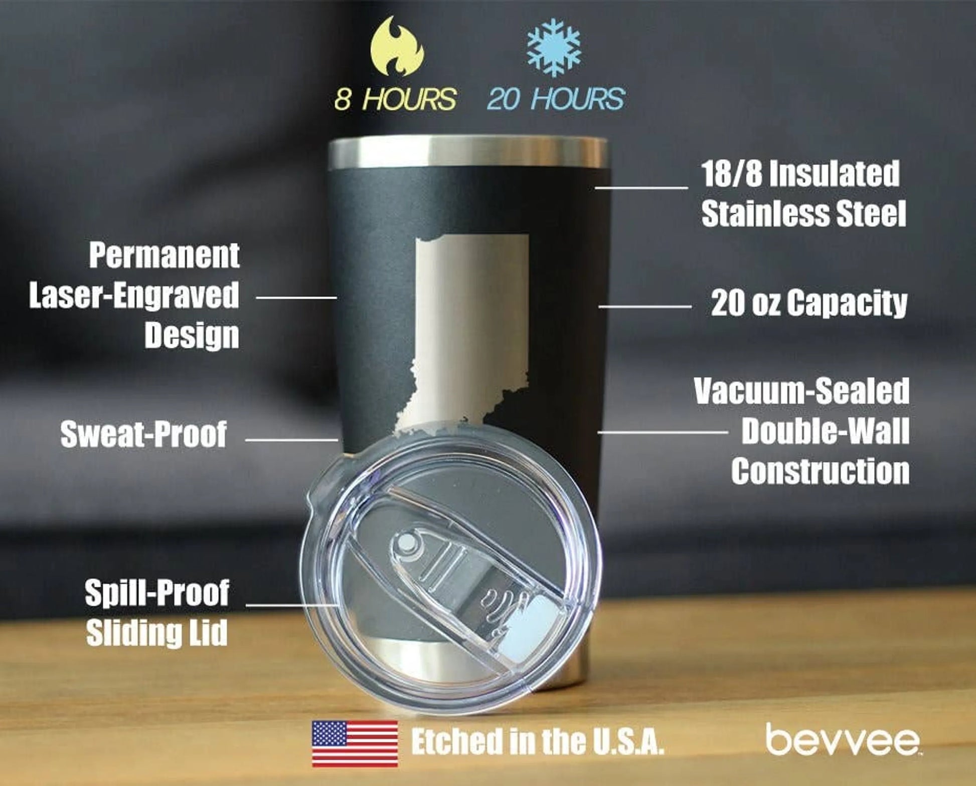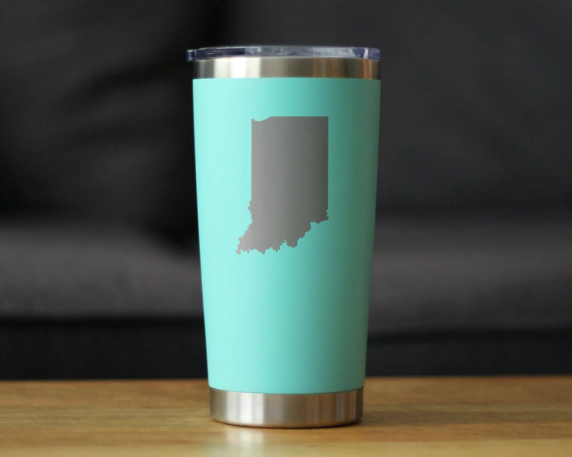 Insulated Coffee Tumbler Cup with Sliding Lid 20 oz - Indiana State Outline - Cute Gift for Hoosiers Who Love Indiana