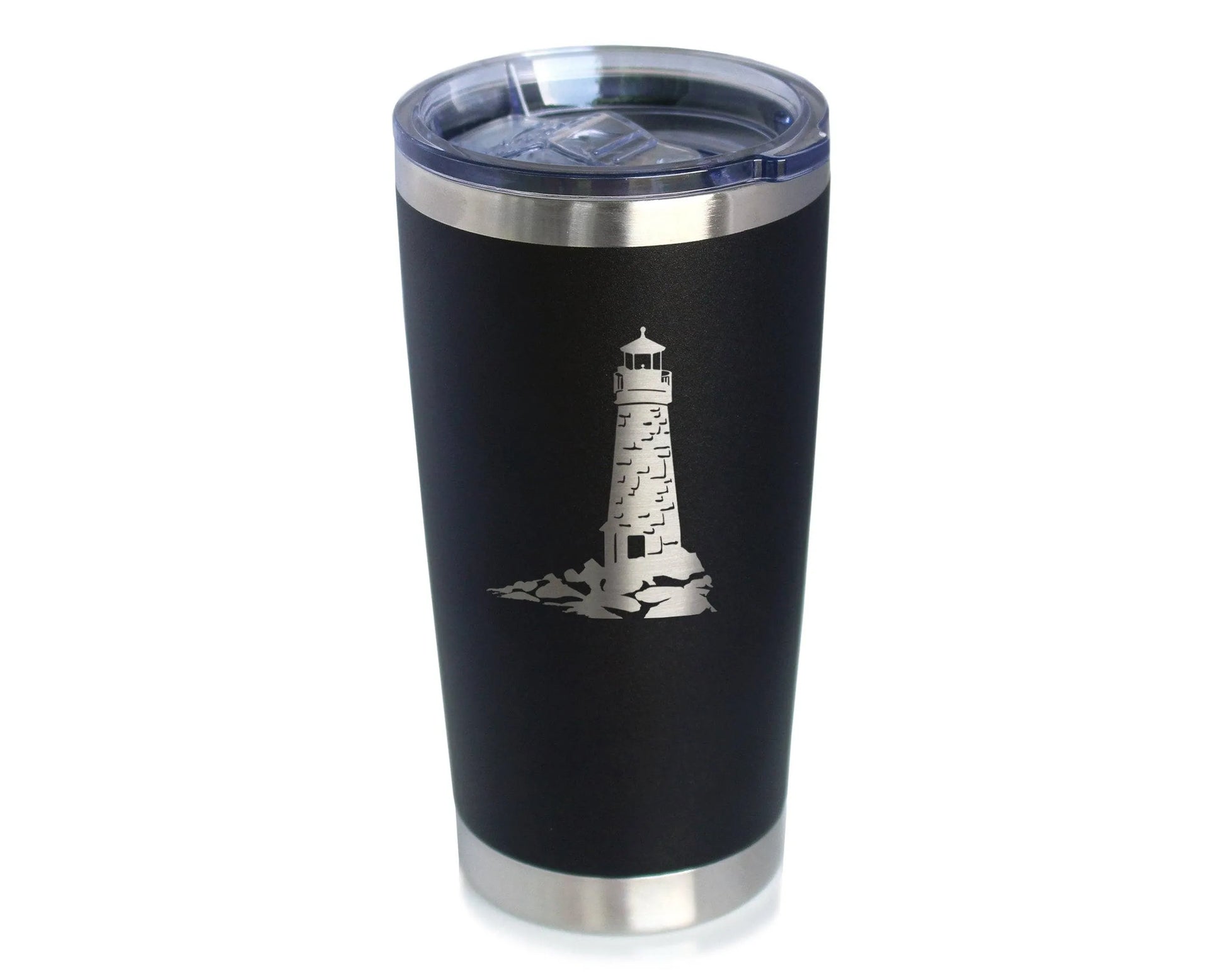 Lighthouse - Insulated Coffee Tumbler Cup with Sliding Lid - Stainless Steel Travel Mug - Beach Gifts and Decor for Women and Men