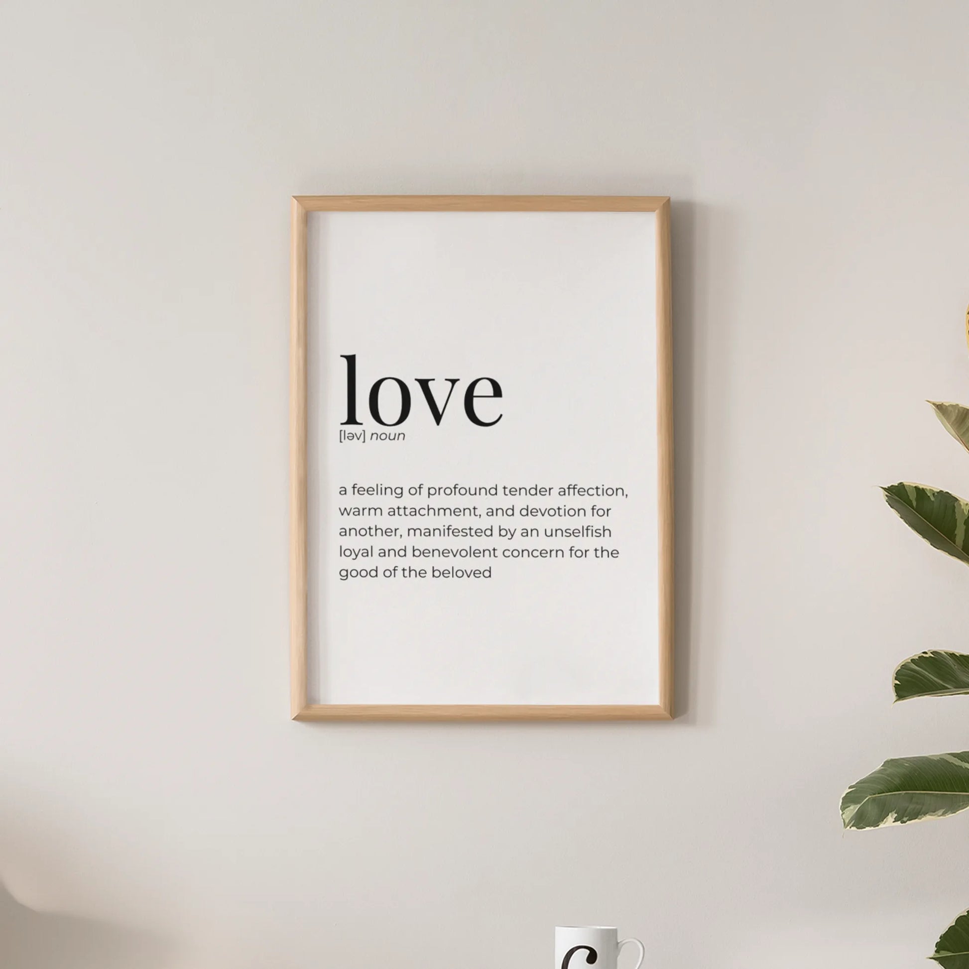 Love: a feeling of profound tender affection, warm attachment, and devotion for another, manifested by an unselfish loyal and benevolent concern for the good of the beloved.