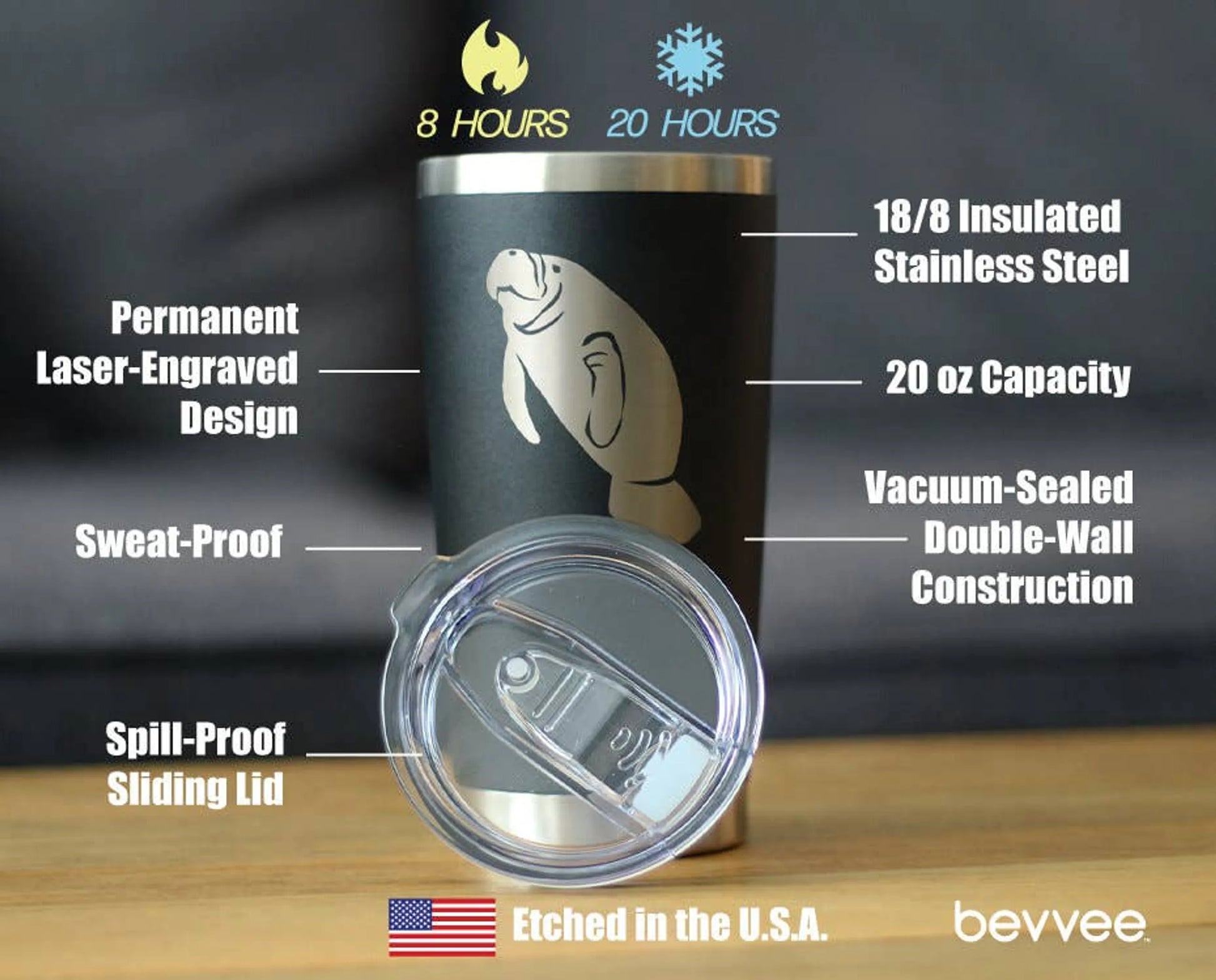 Manatee - Insulated Coffee Tumbler Cup with Sliding Lid - Stainless Steel Travel Mug - Manatee Gifts Women and Men Beach Lovers
