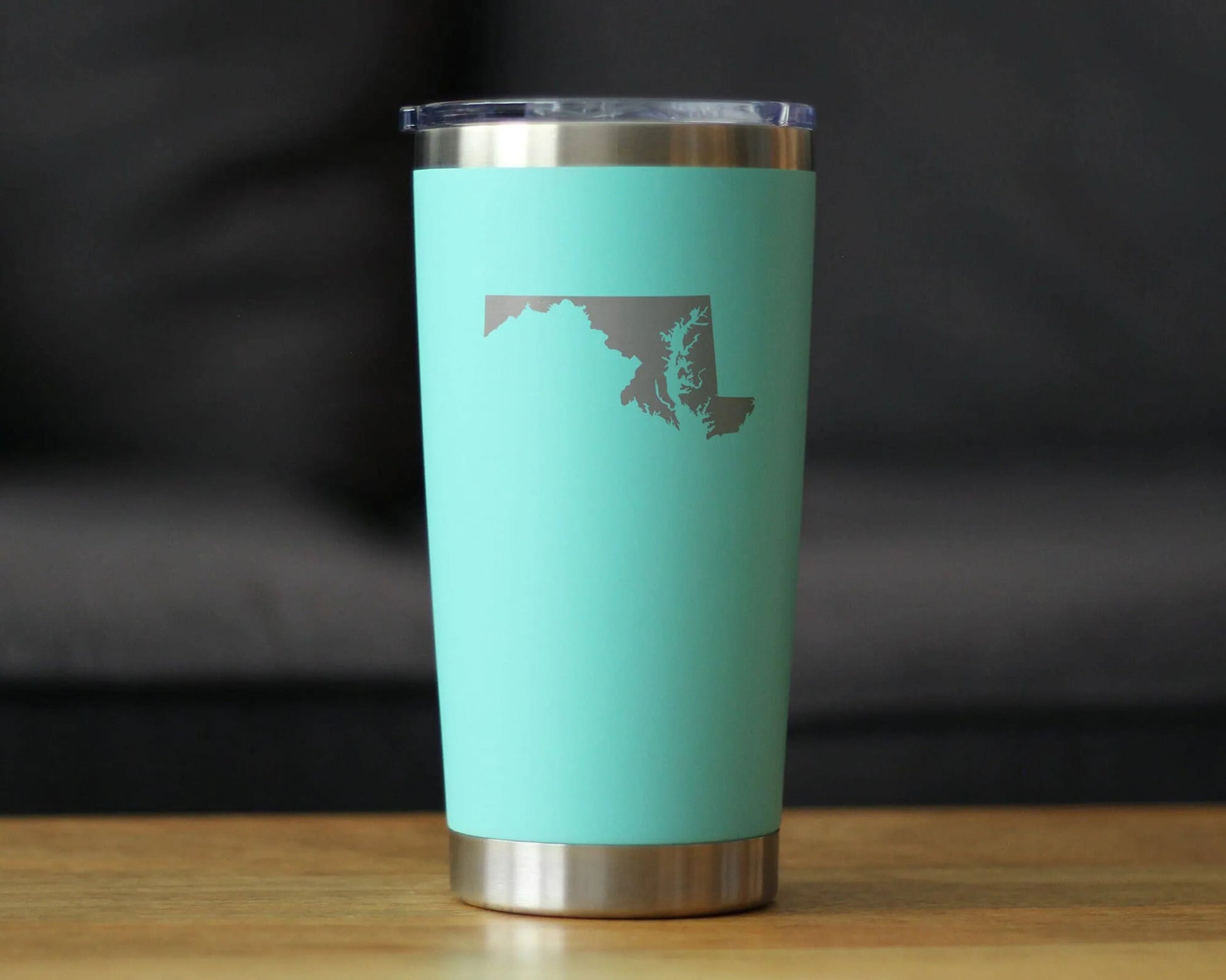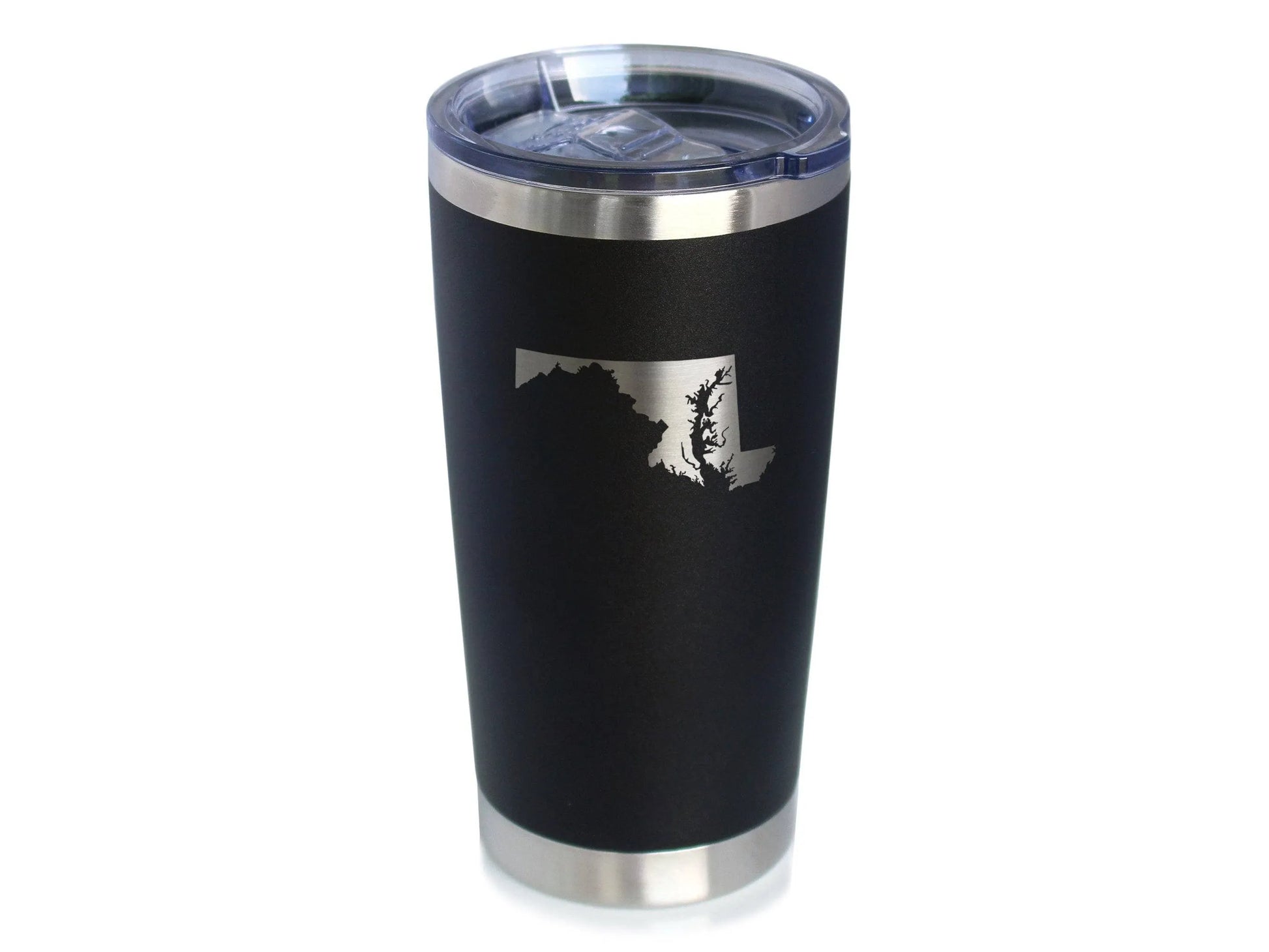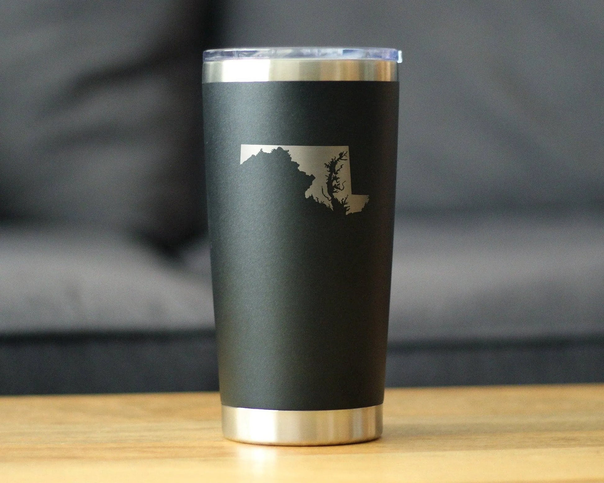 Insulated Coffee Tumbler Cup with Sliding Lid - 20 oz - Maryland State Outline - Cute Gift for Marylanders Who Love Maryland