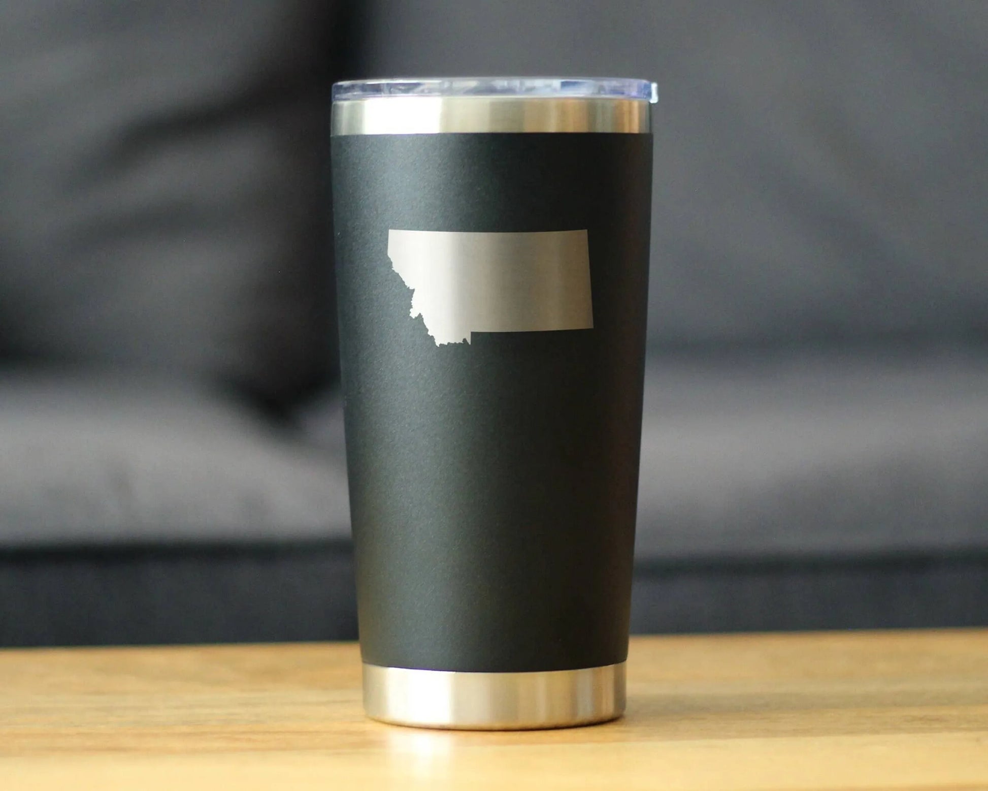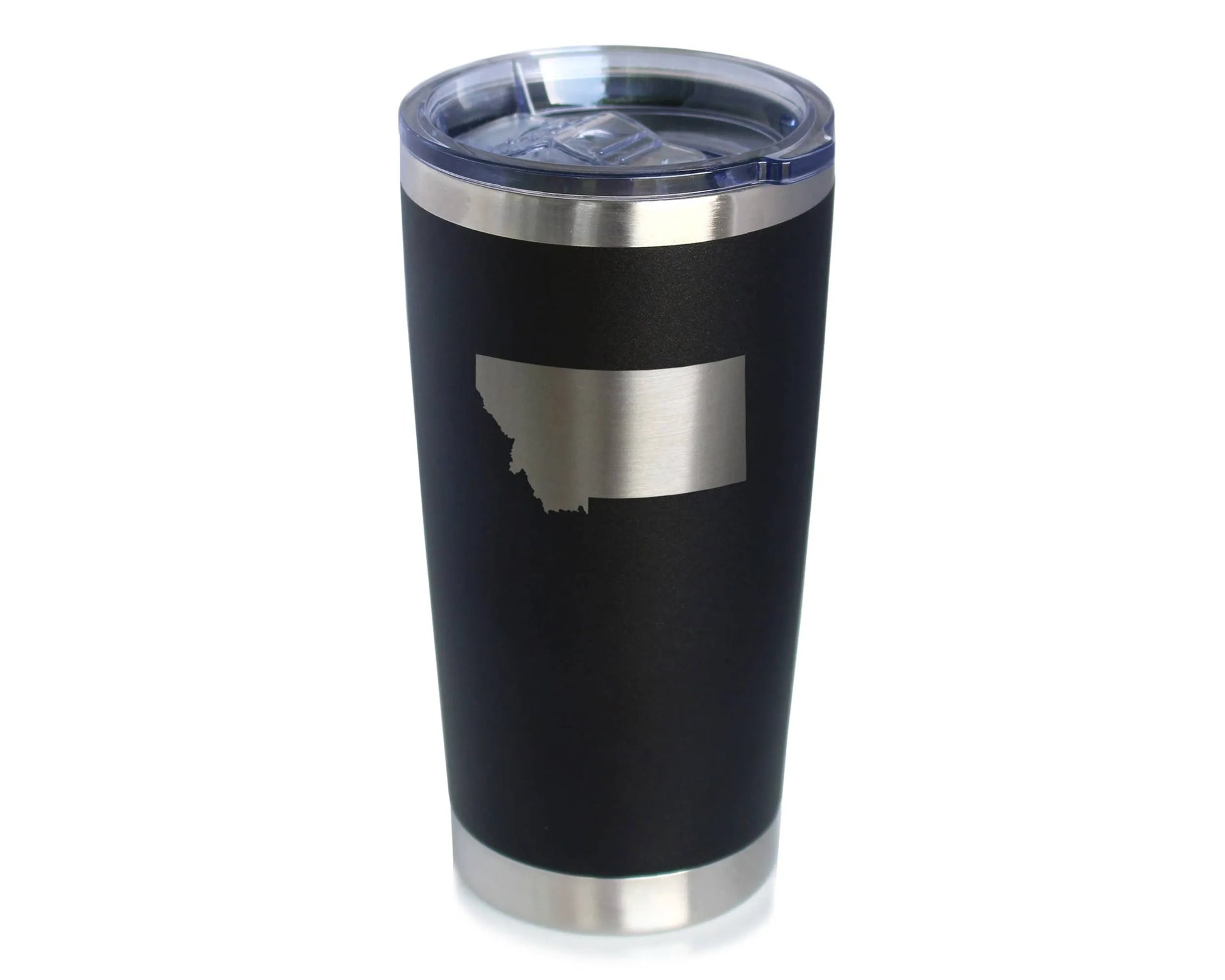 Montana State Outline - Insulated Coffee Tumbler Cup with Sliding Lid - Stainless Steel Travel Mug - Montana Gifts for Women & Men Montanans