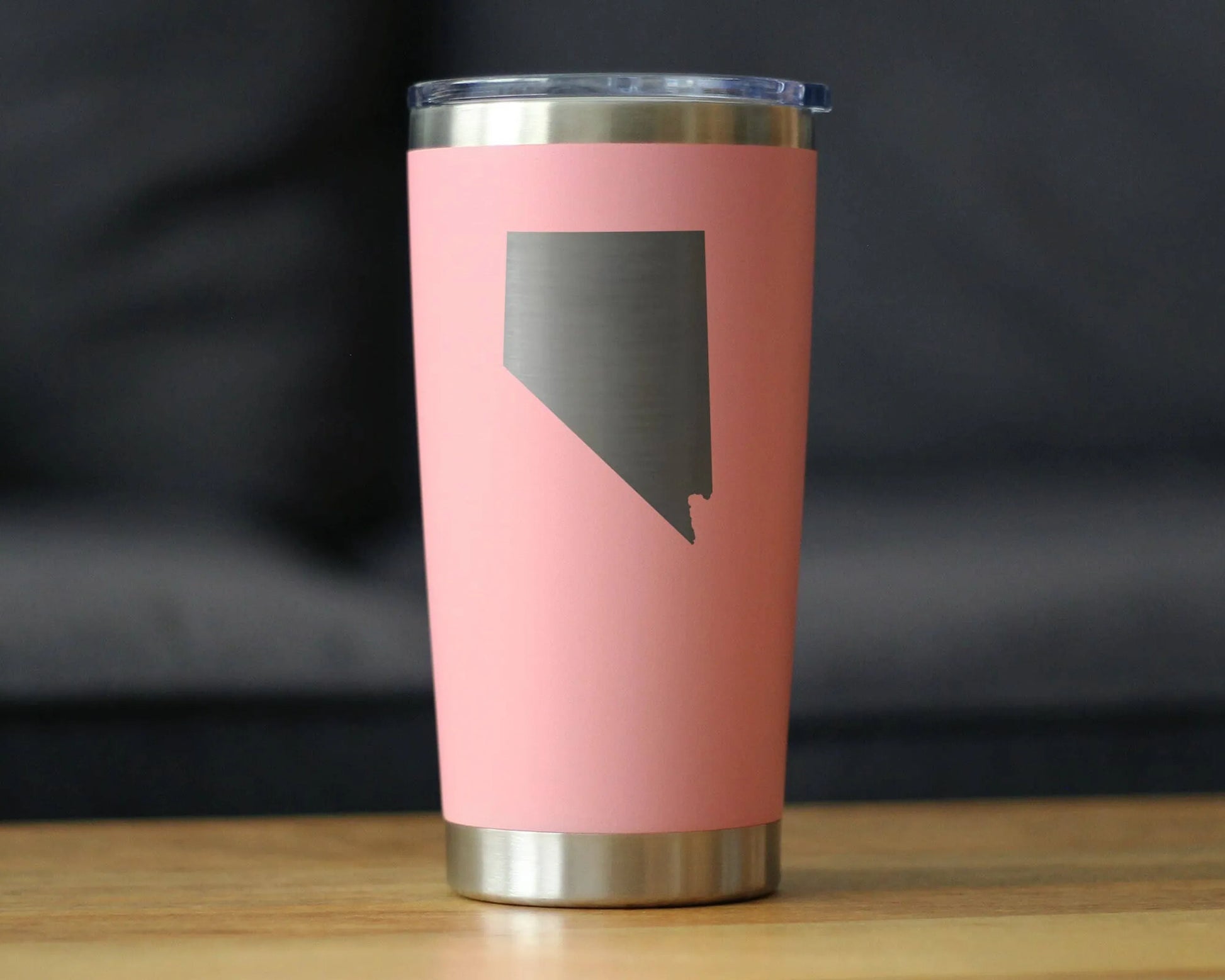 Insulated Coffee Tumbler Cup with Sliding Lid - 20 oz - Nevada State Outline - Cute Gift for Nevadans Who Love Nevada