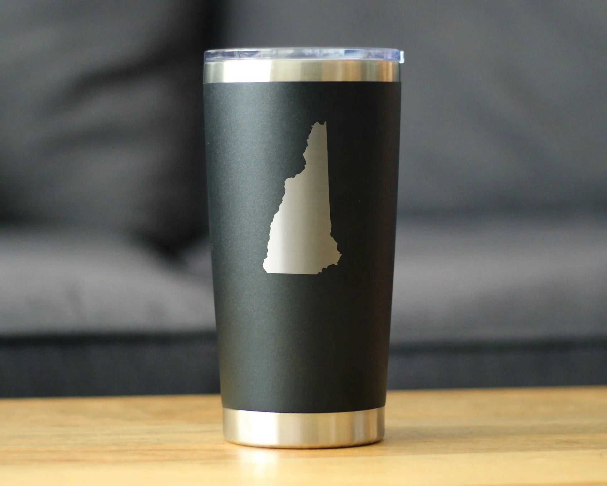 New Hampshire State Outline - Insulated Coffee Tumbler Cup with Sliding Lid - Stainless Steel Travel Mug - NH Gifts for Women and Men