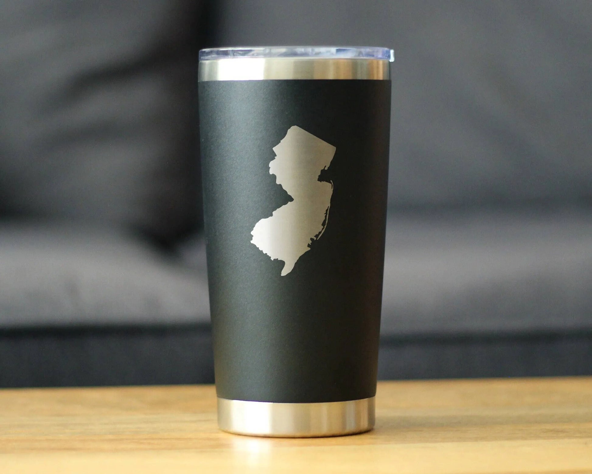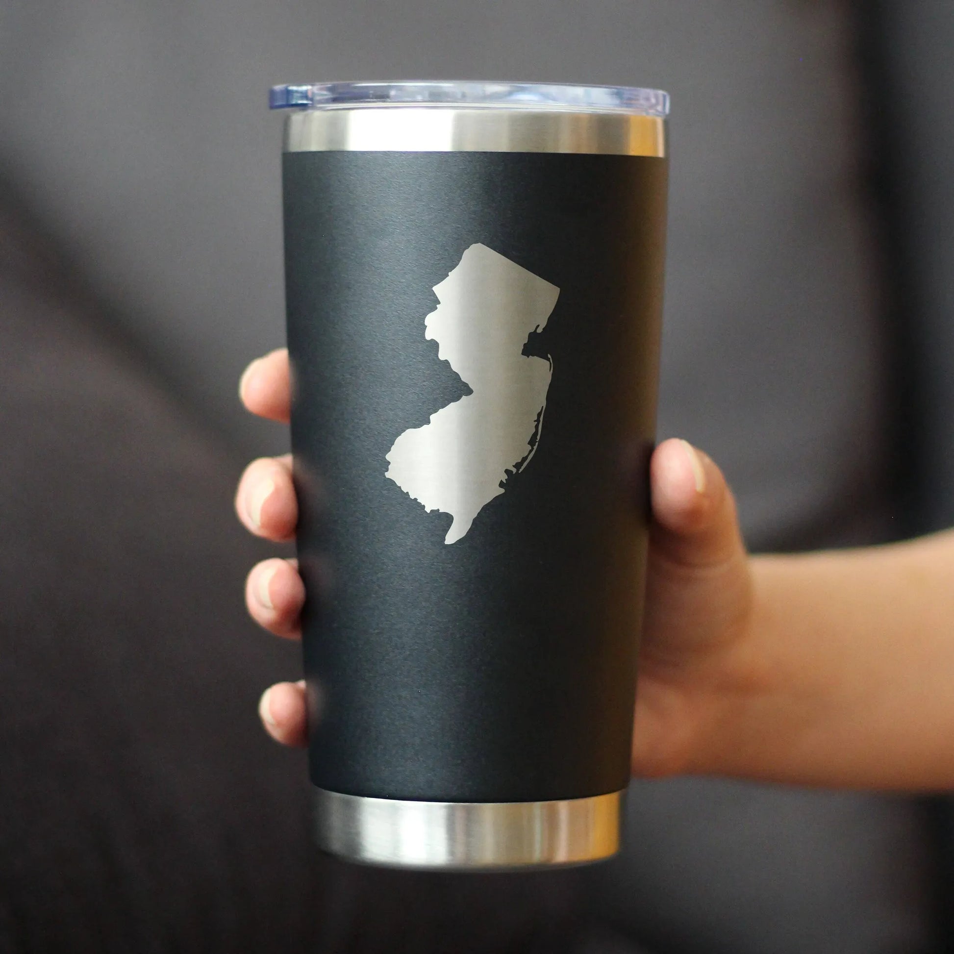 Insulated Coffee Tumbler Cup with Sliding Lid 20 oz - New Jersey State Outline - Cute Gift for New Jerseyites