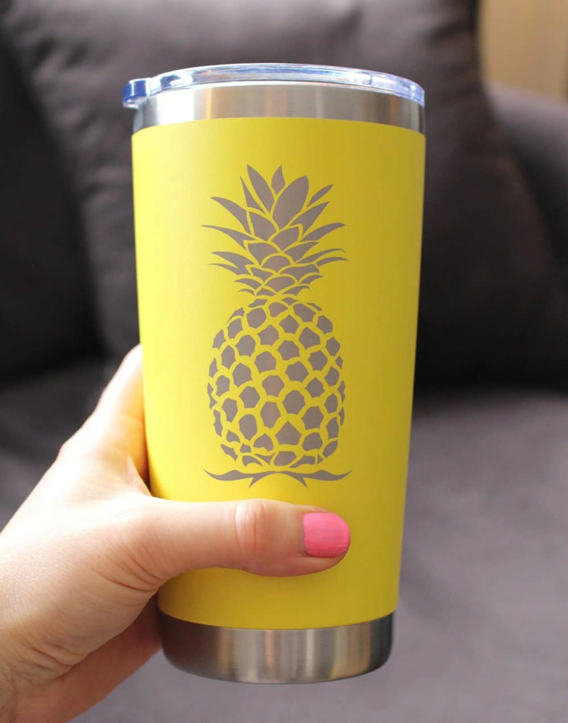 Insulated Coffee Tumbler Cup with Sliding Lid - Pineapple - 20 oz - Cute Tropical Fruit Themed Gifts and Decor for Summer Lovers