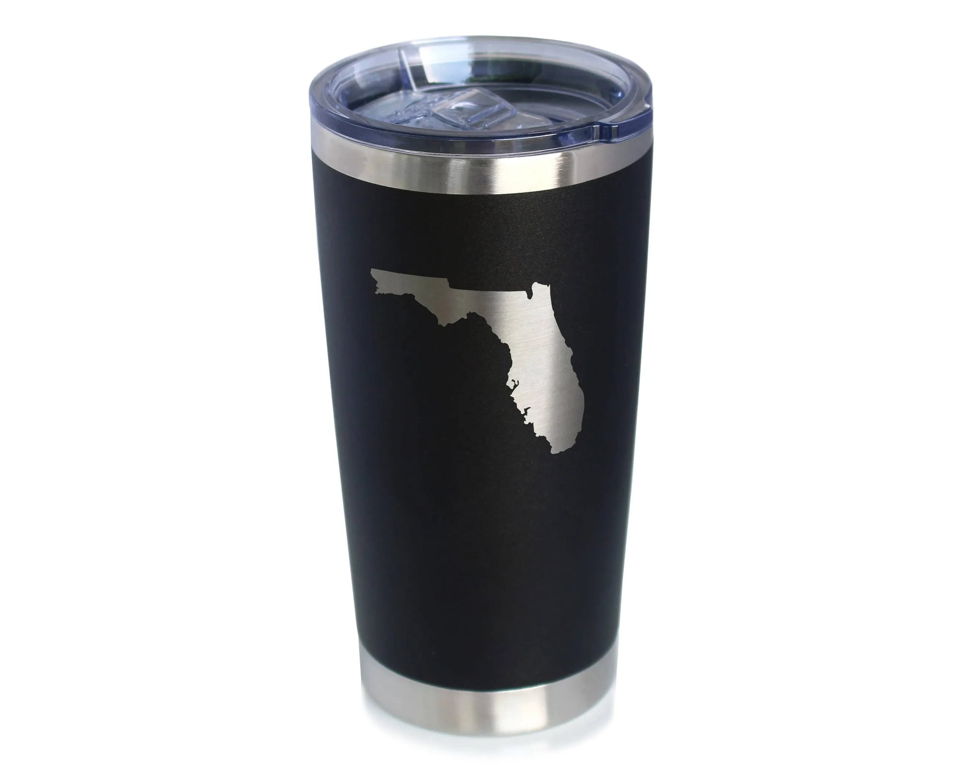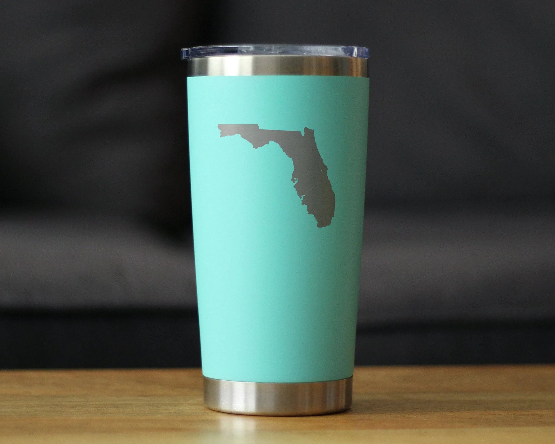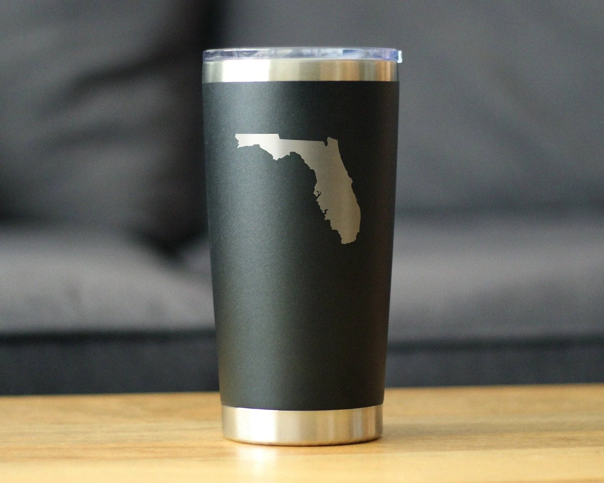 Florida State Outline - Insulated Coffee Tumbler Cup with Sliding Lid - Stainless Steel Coffee Mug - State Themed Gifts For Floridians