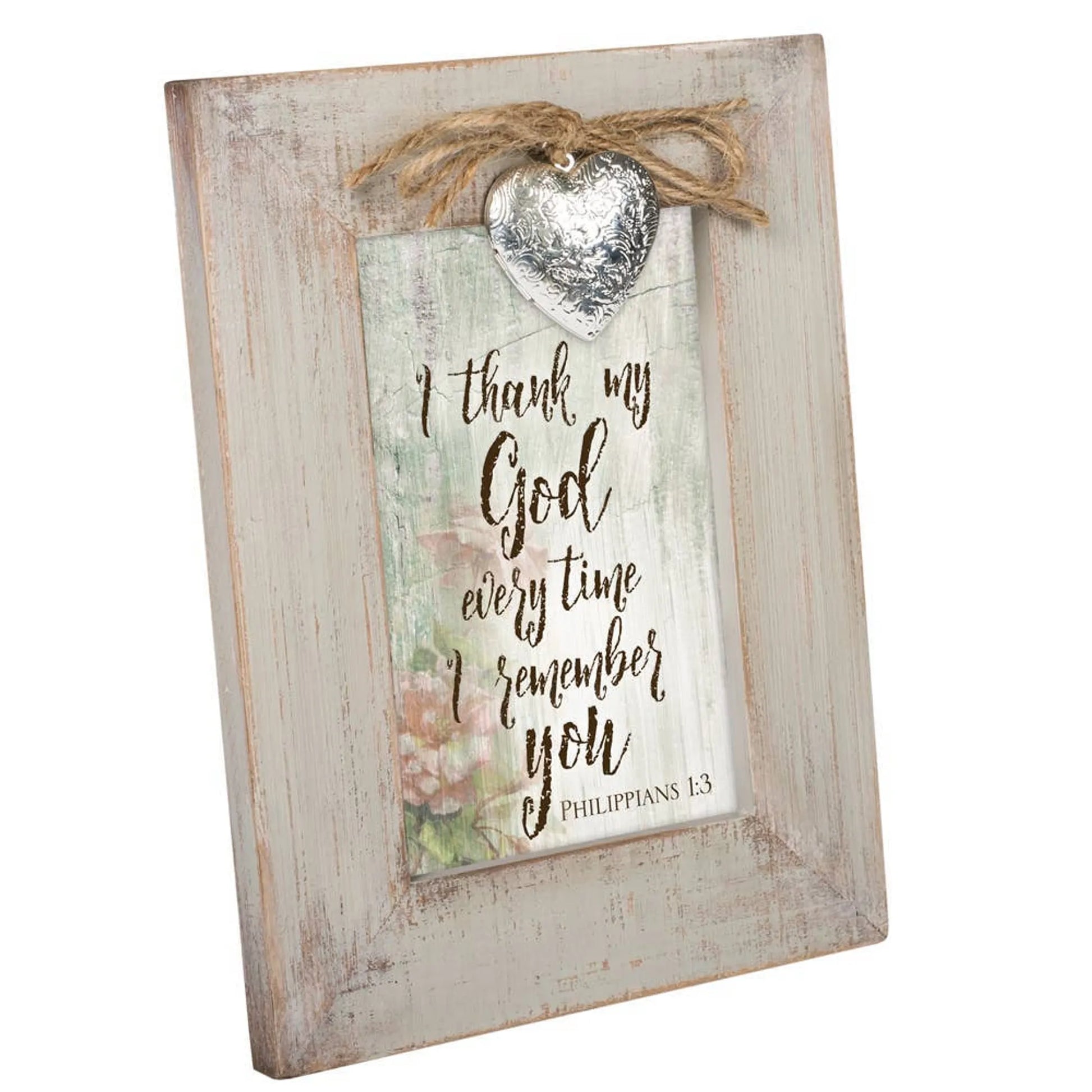 The frame is in a natural distressed finish and features a scroll patterned heart-shaped silver tone locket to keep a treasured photo or keepsake.