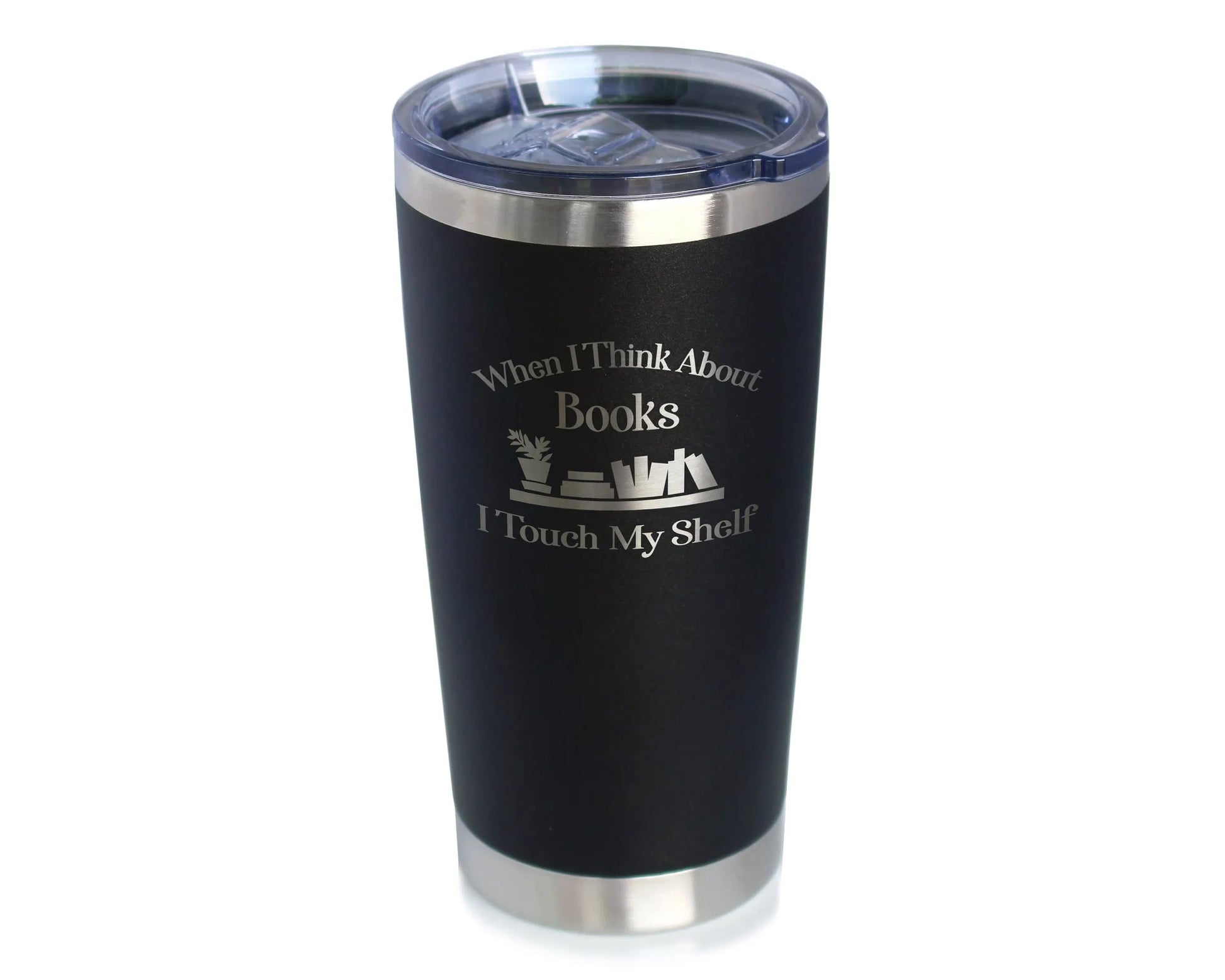 Insulated Coffee Tumbler Cup with Sliding Lid - When I Think About Books I Touch My Shelf - 20 oz - Gifts for Librarians & Readers
