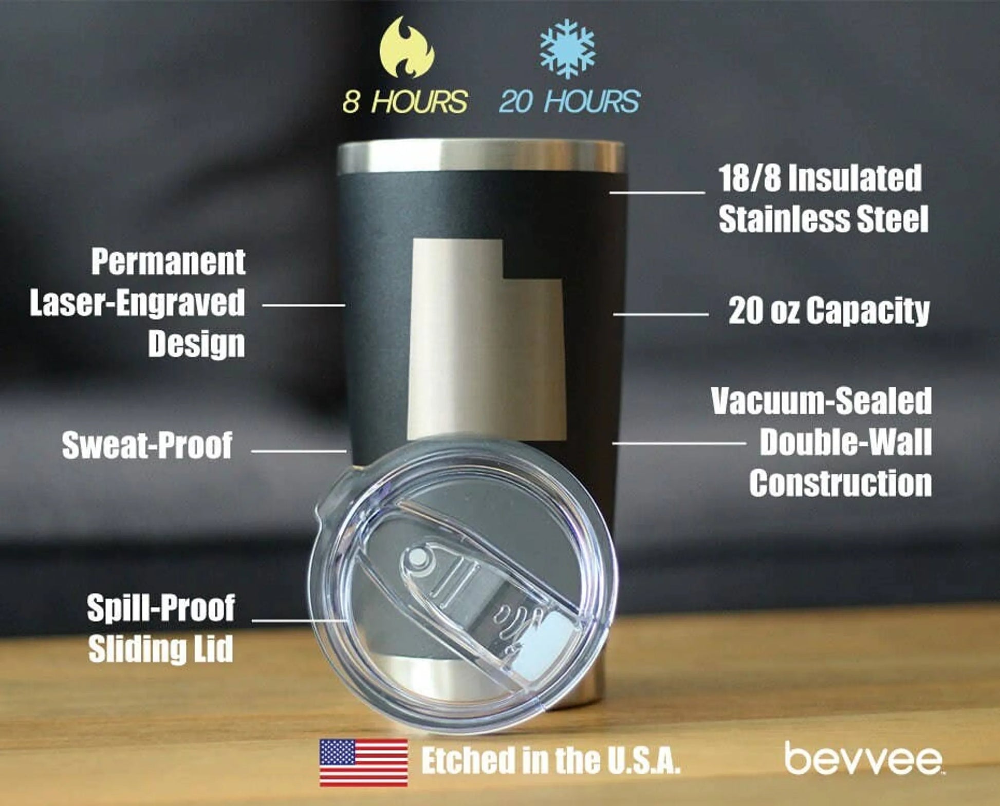 Insulated Coffee Tumbler Cup with Sliding Lid - 20 oz - Utah State Outline - Cute Gift for Utahns Who Love UT
