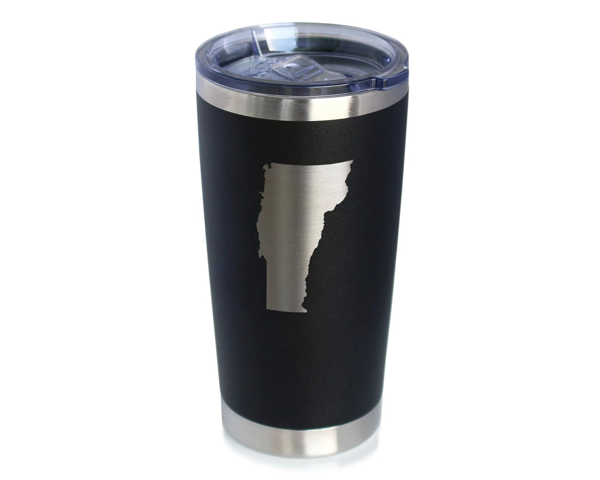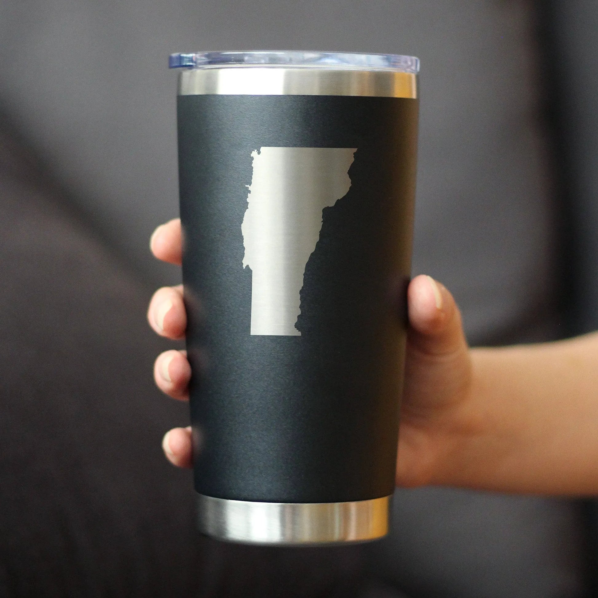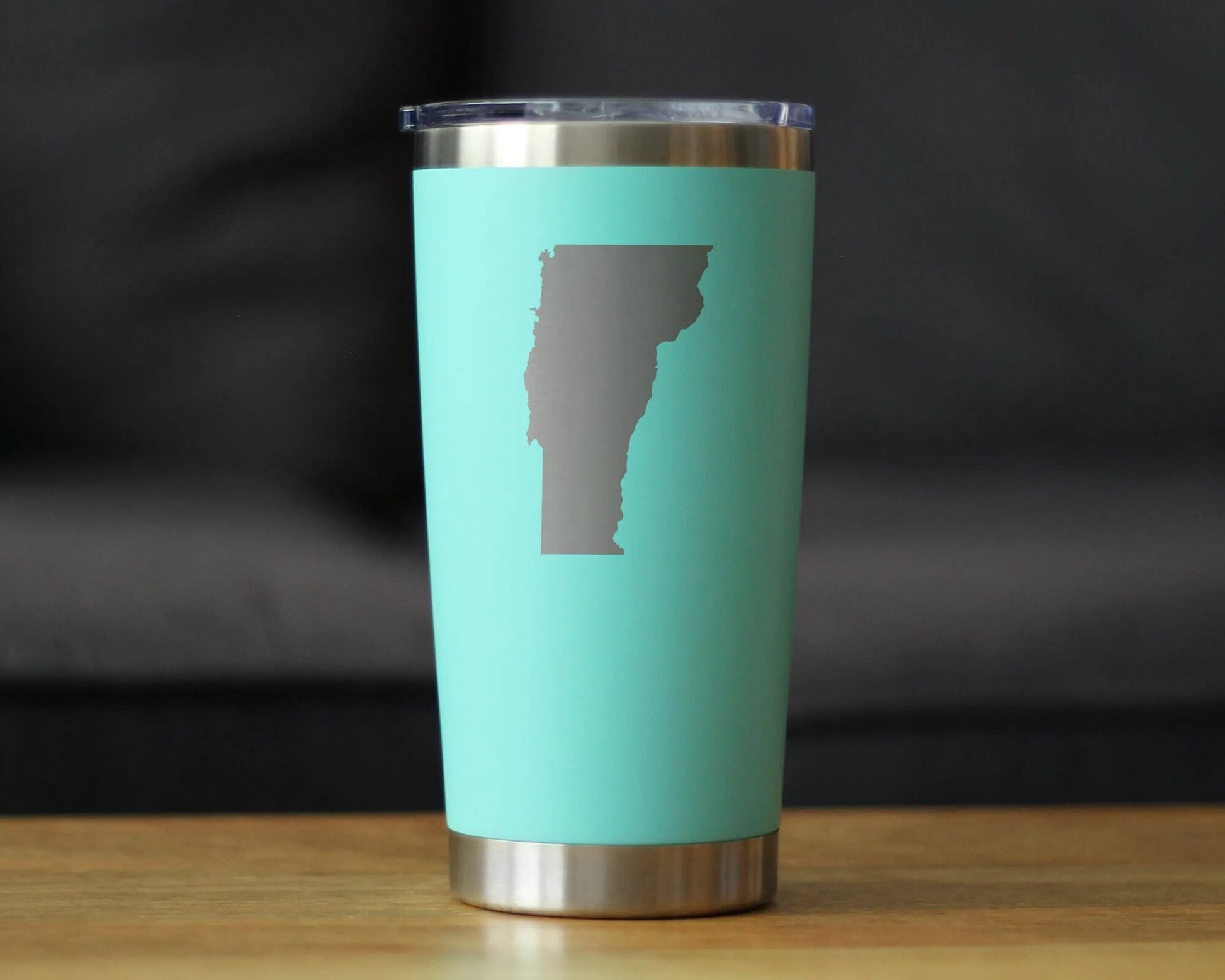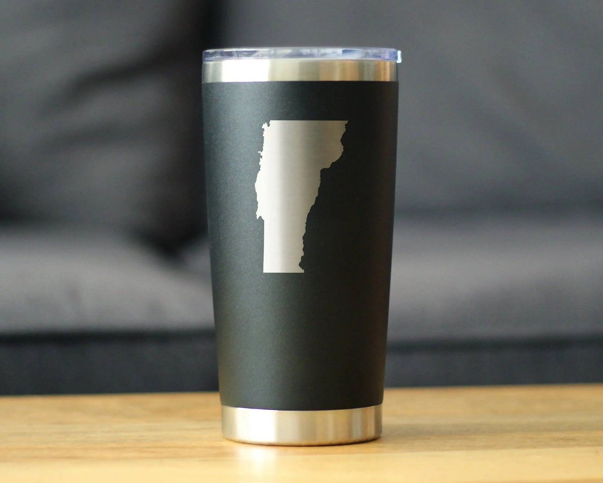Insulated Coffee Tumbler Cup with Sliding Lid - 20 oz - Vermont State Outline - Cute Gift for Vermonters Who Love VT
