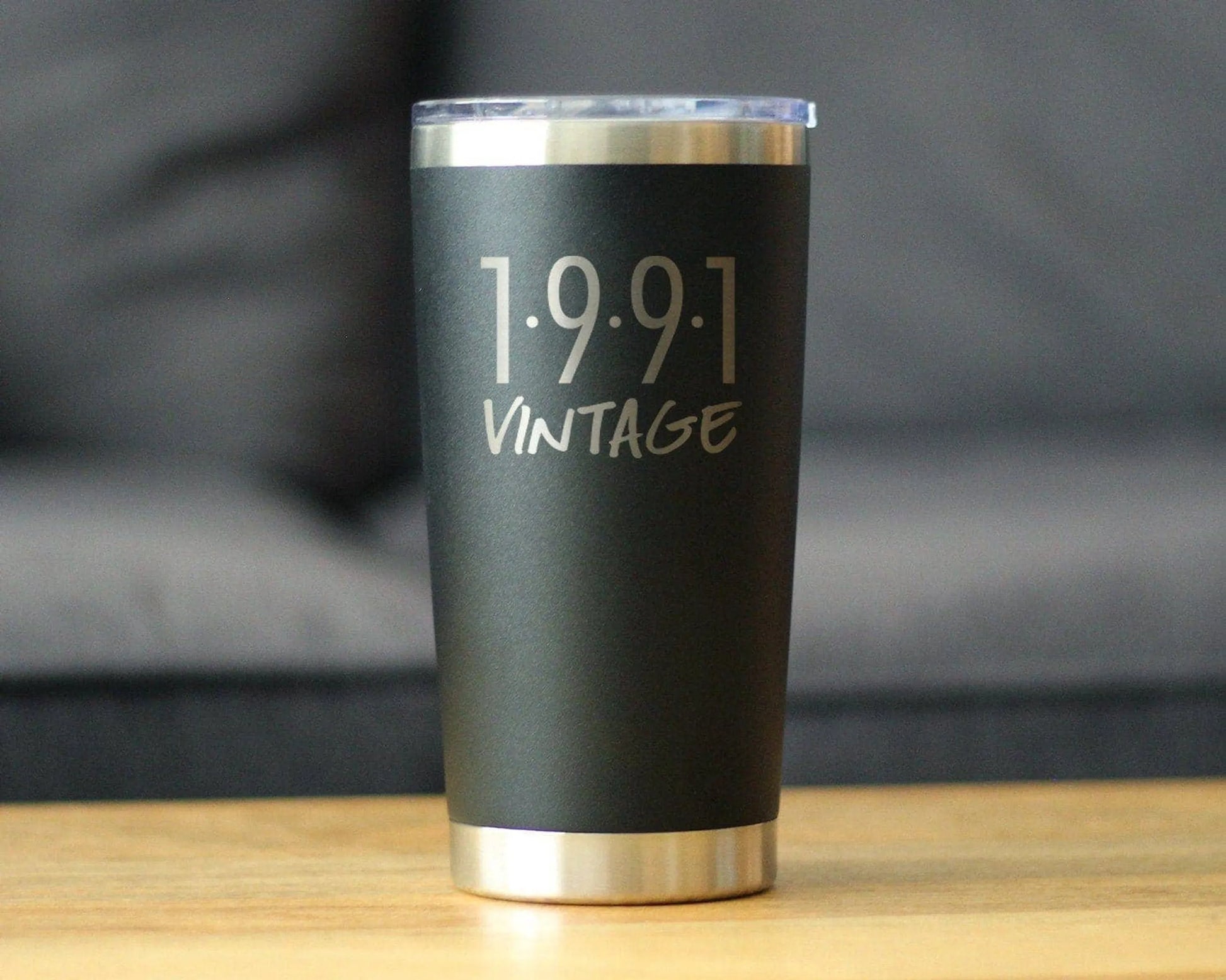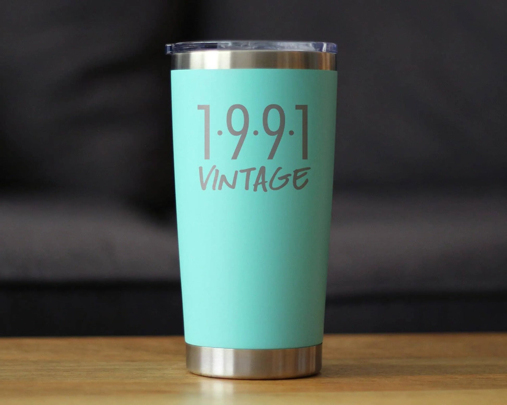 Vintage 1991 - Insulated Coffee Tumbler Cup with Sliding Lid - 20 oz - Funny 33rd Birthday Gift for Women or Men Turning 33