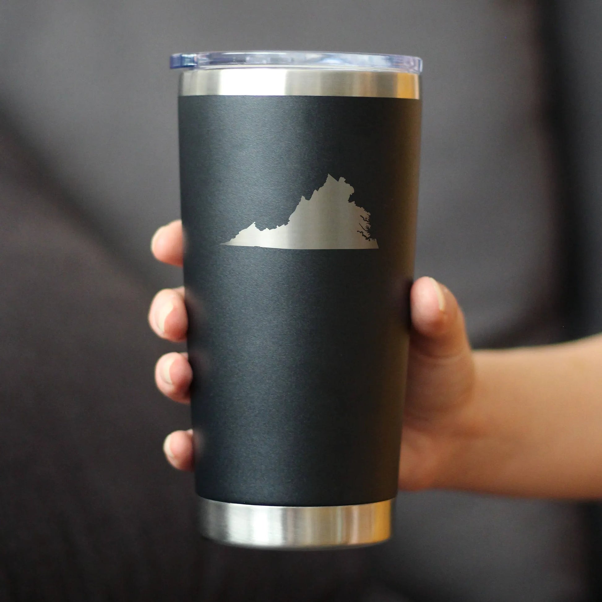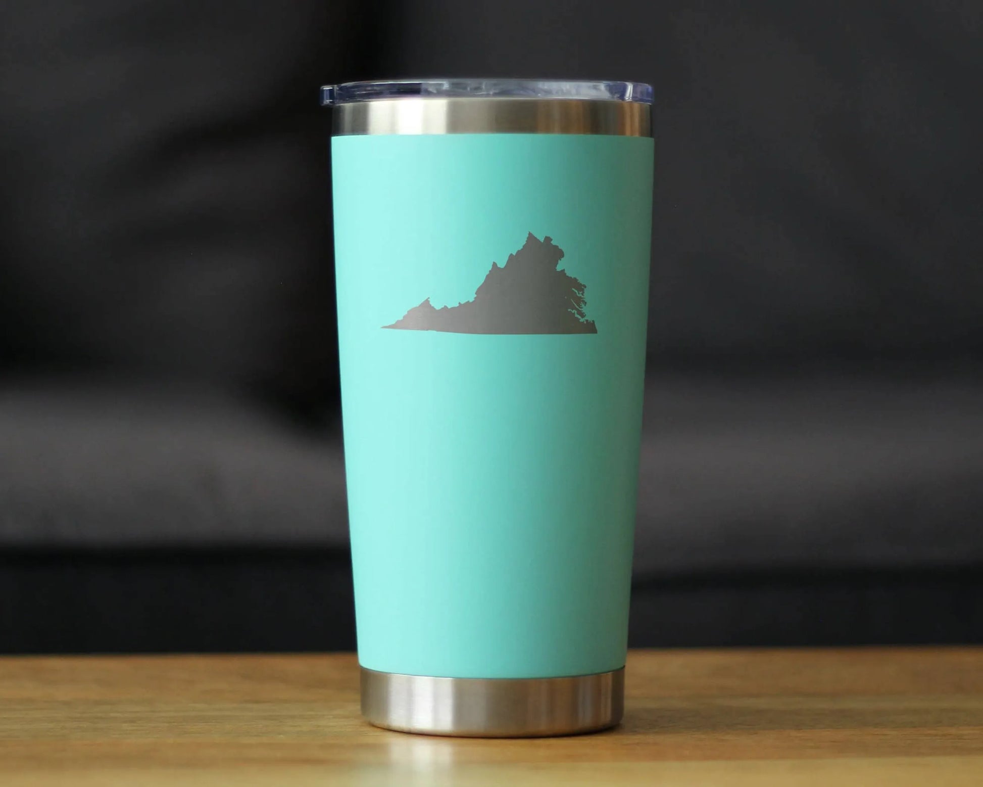 Virginia State Outline - Insulated Coffee Tumbler Cup & Sliding Lid - Stainless Steel Travel Mug - Virginia Gifts for Women, Men Virginians