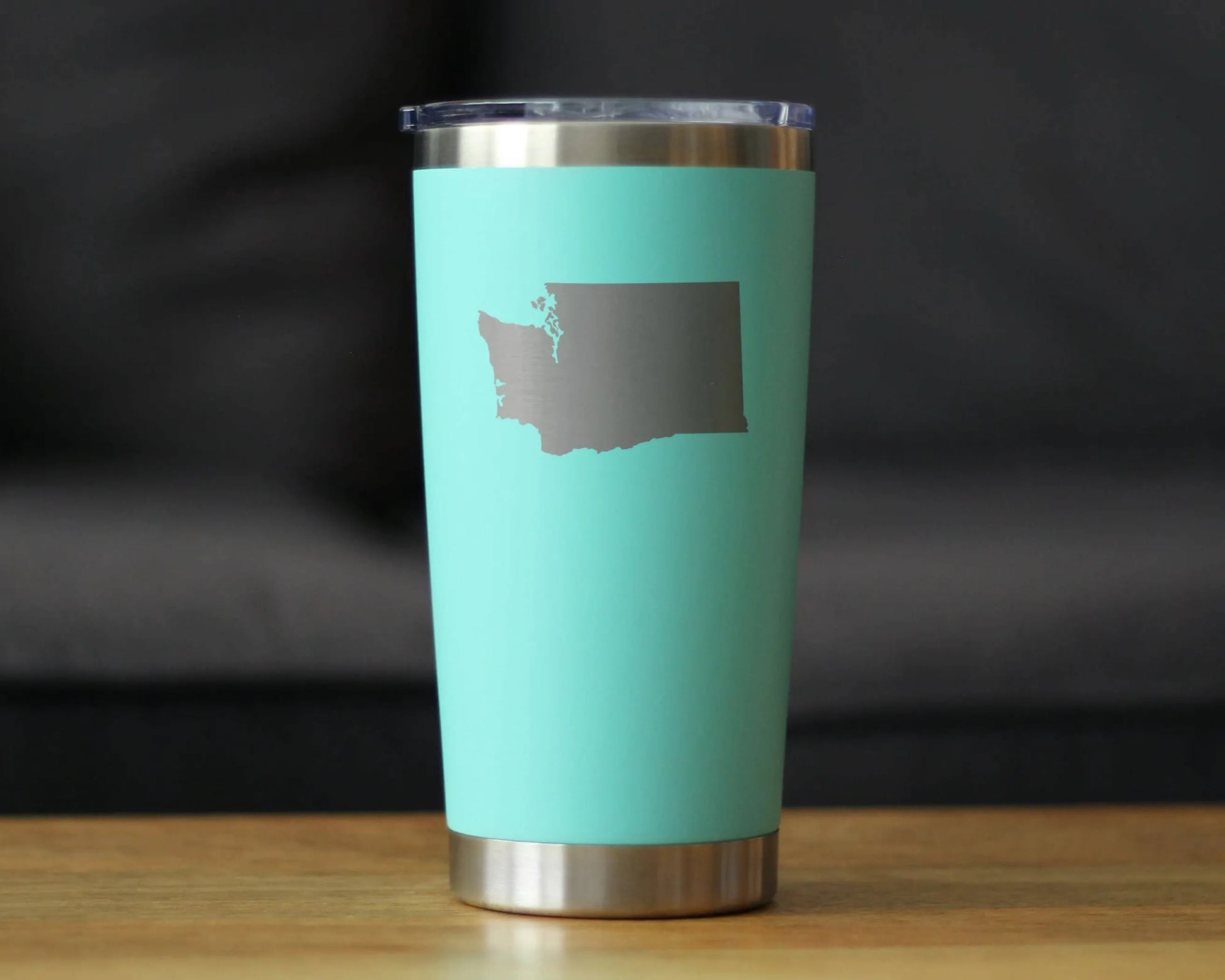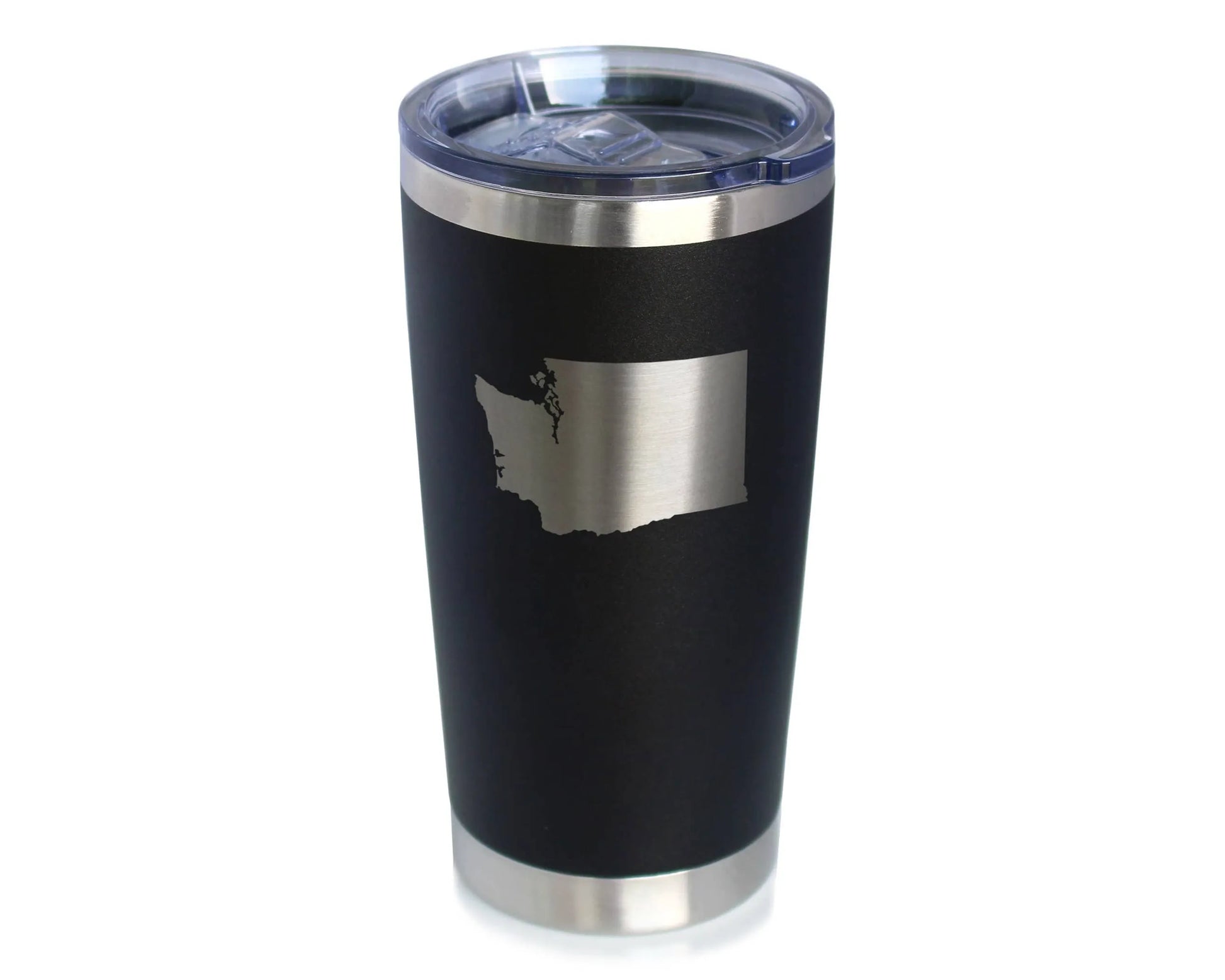 Insulated Coffee Tumbler Cup with Sliding Lid - 20 oz - Washington State Outline - Cute Gift for Washingtonians Who Love WA