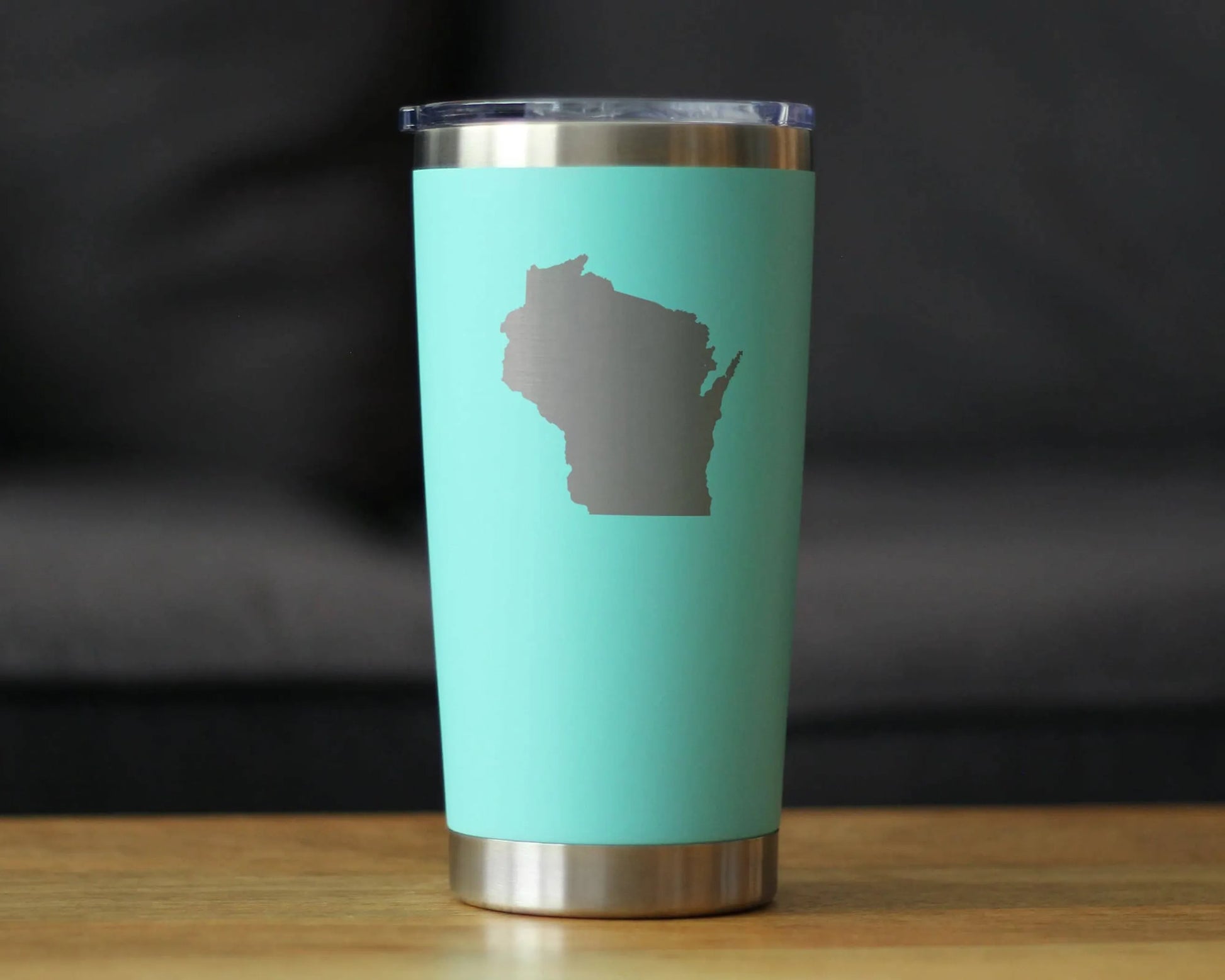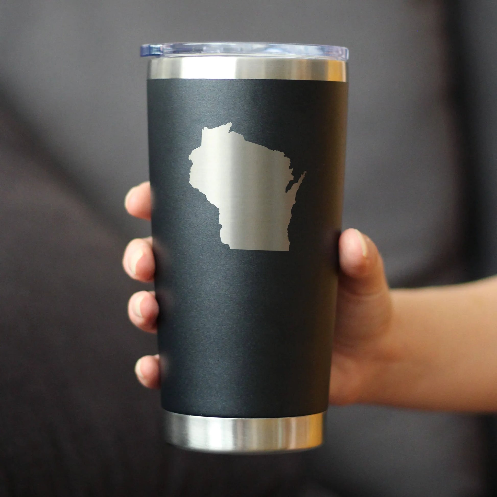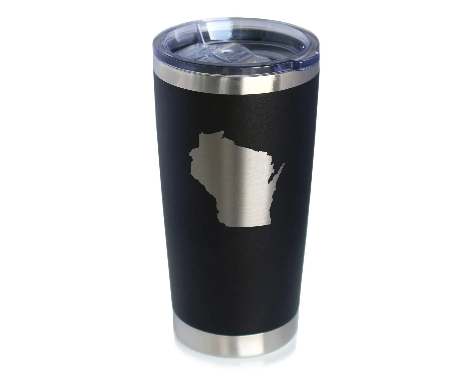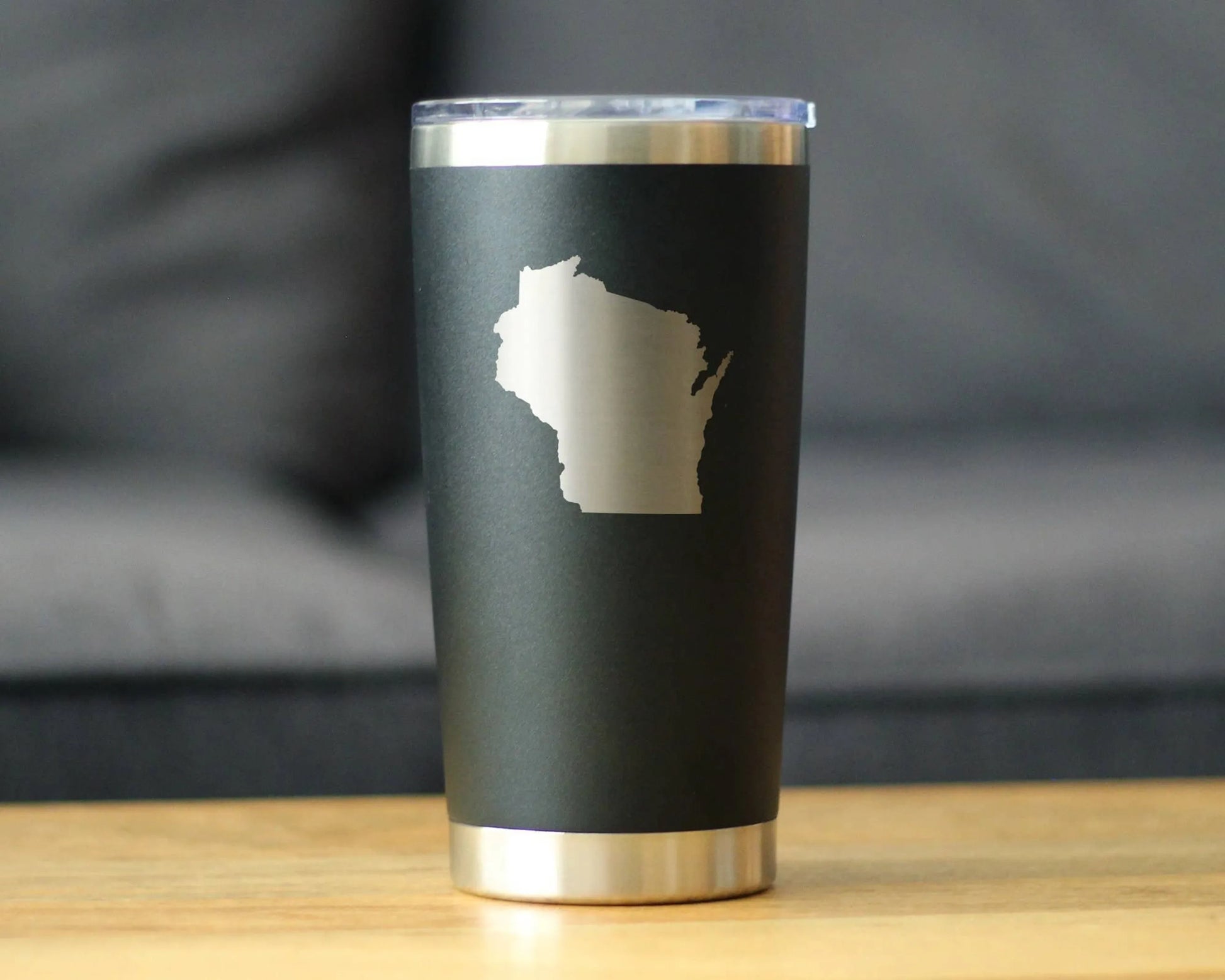 Wisconsin State Outline - Insulated Coffee Tumbler Cup with Sliding Lid - Stainless Steel Travel Mug - Wisconsin Gifts for Women and Men